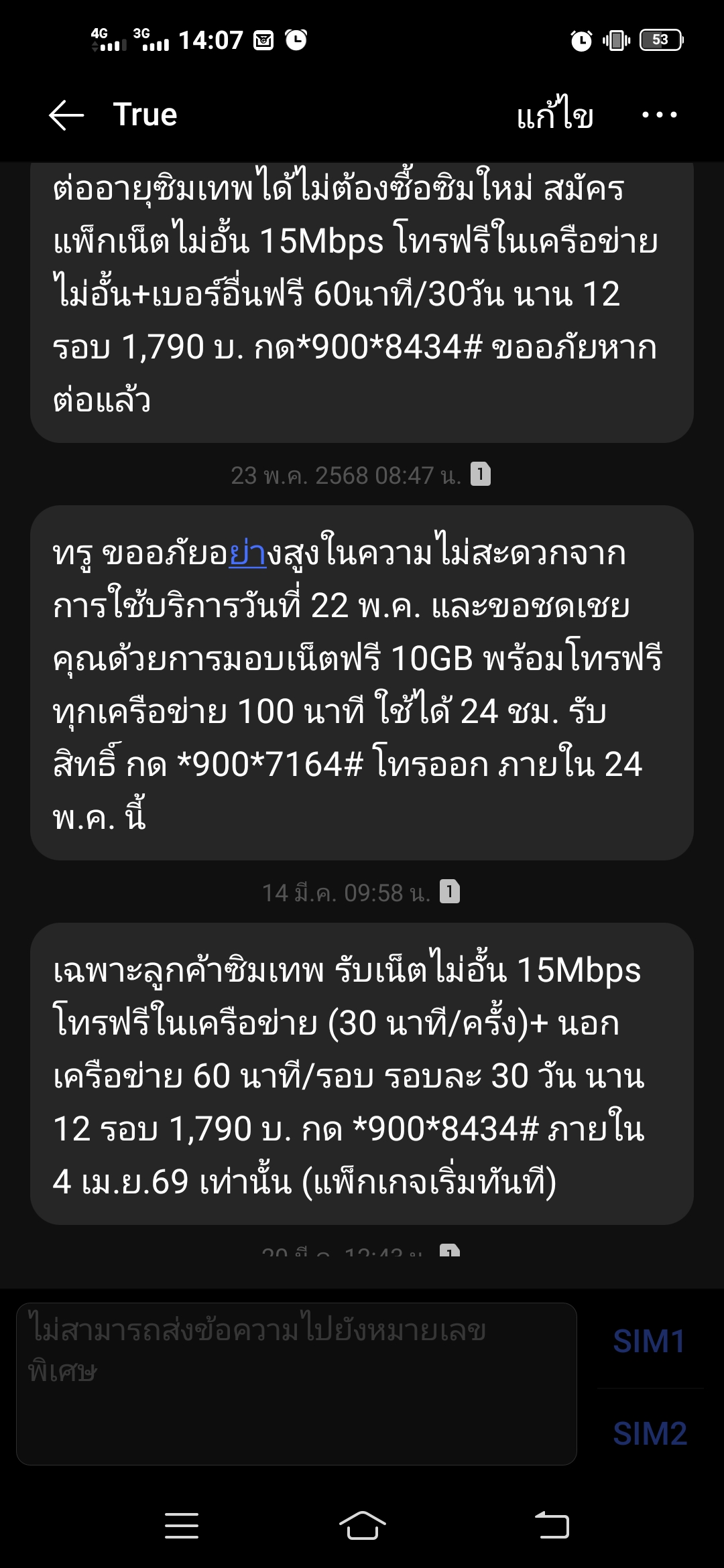 ต่ออายุซิมเทพทรู *900*8434# ไม่ได้ต่อตรงวันที่หมดหราครับ งง