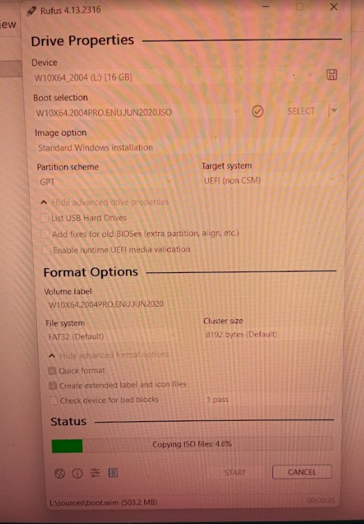 ทำยูเอสบีเพื่อติดตั้งวินโดวส์ 10 ใช้รูฟัส 4.13 ทำ ตอนเลือกๆ GPT UEFI ( non CSM)