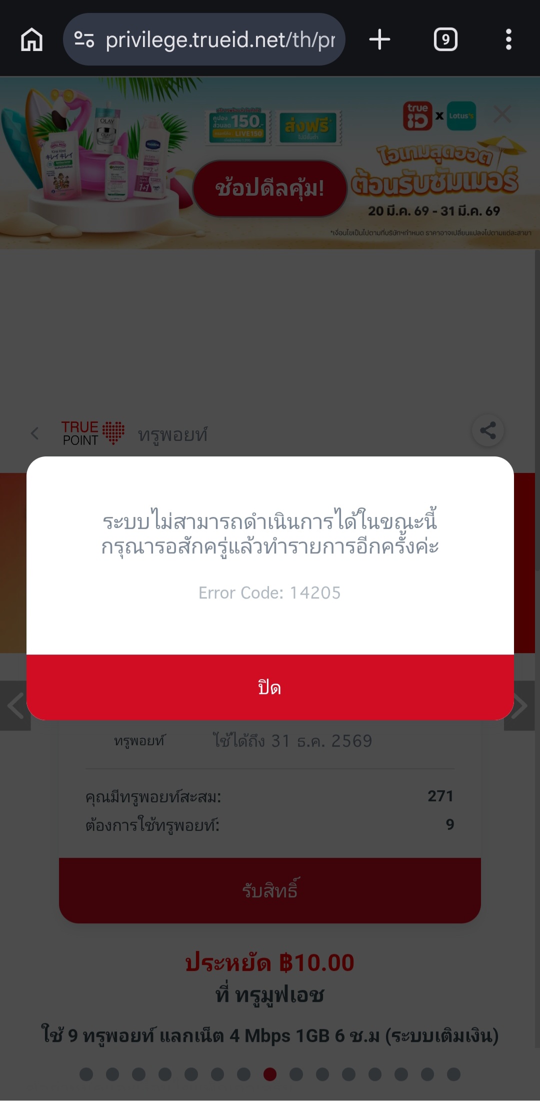 เข้าทรูพ้อยได้ปกติแต่พอจะกดแลก เน็ตหรือซื้อสิ้นค้าขึ้นแบบนี้