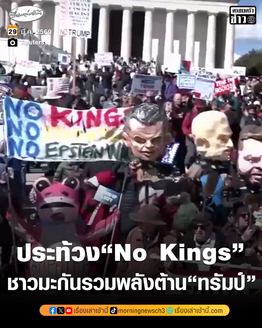 ชาวอเมริกันนับล้านคน ชุมนุมประท้วง "No Kings"ในหลายเมืองทั่วประเทศ ต่อต้าน "โดนัลด์ ทรัมป์" บริหารประเทศถดถอย ทำสงครามที่โง่เขลา