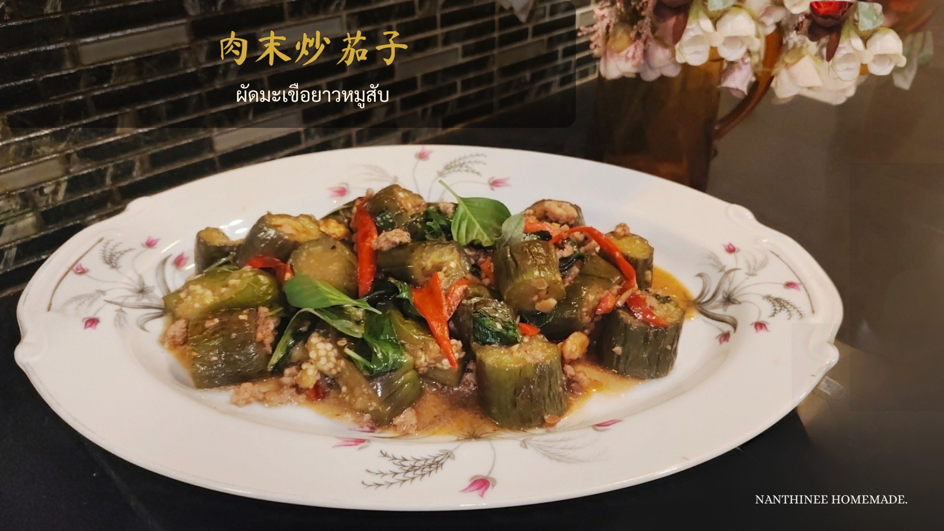 ผัดมะเขือยาวหมูสับ (ชาเกียเหลาะบ้ะฉ่อ)