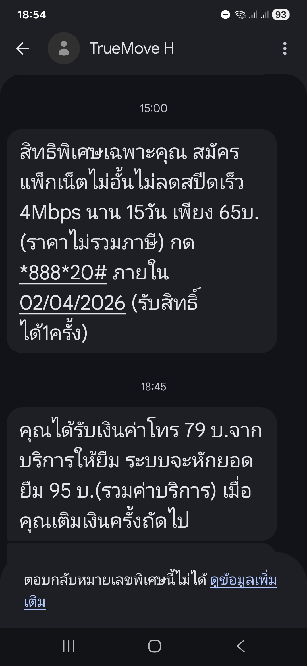 ทรูส่งมาให้แต่สมัครไม่ได้