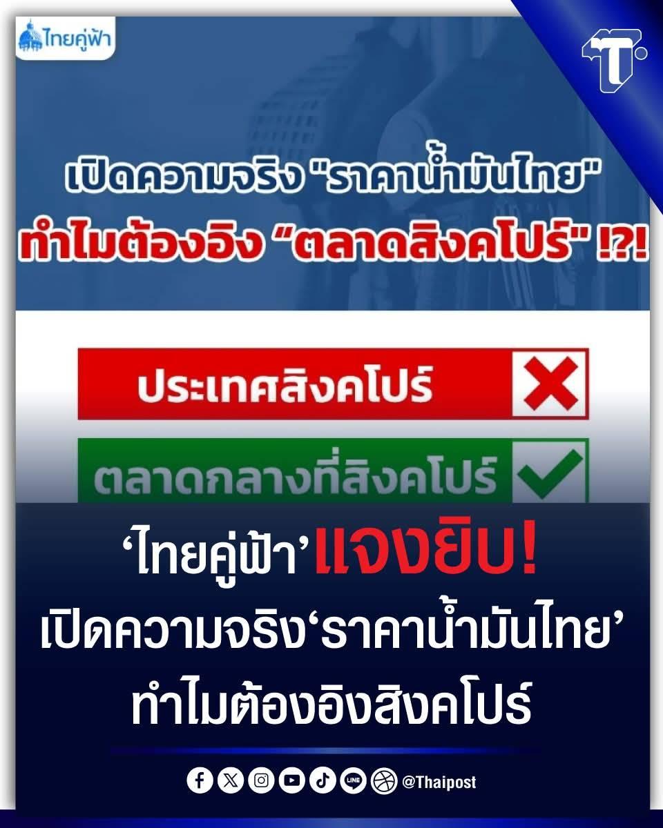เพจ"ไทยคู่ฟ้า"ให้ความรู้ประชาชน เหตุราคาน้ำมันทำไมต้องอ้างอิงตลาดสิงคโปร์