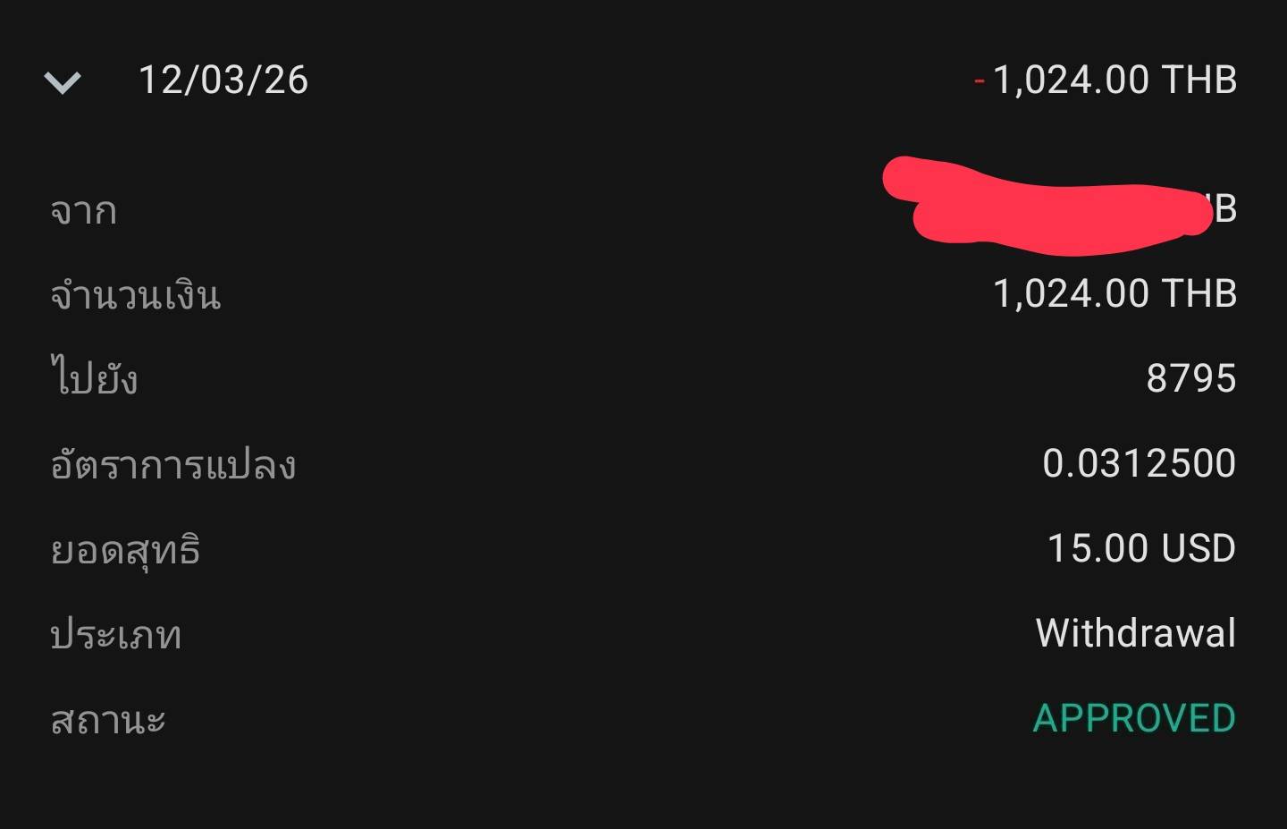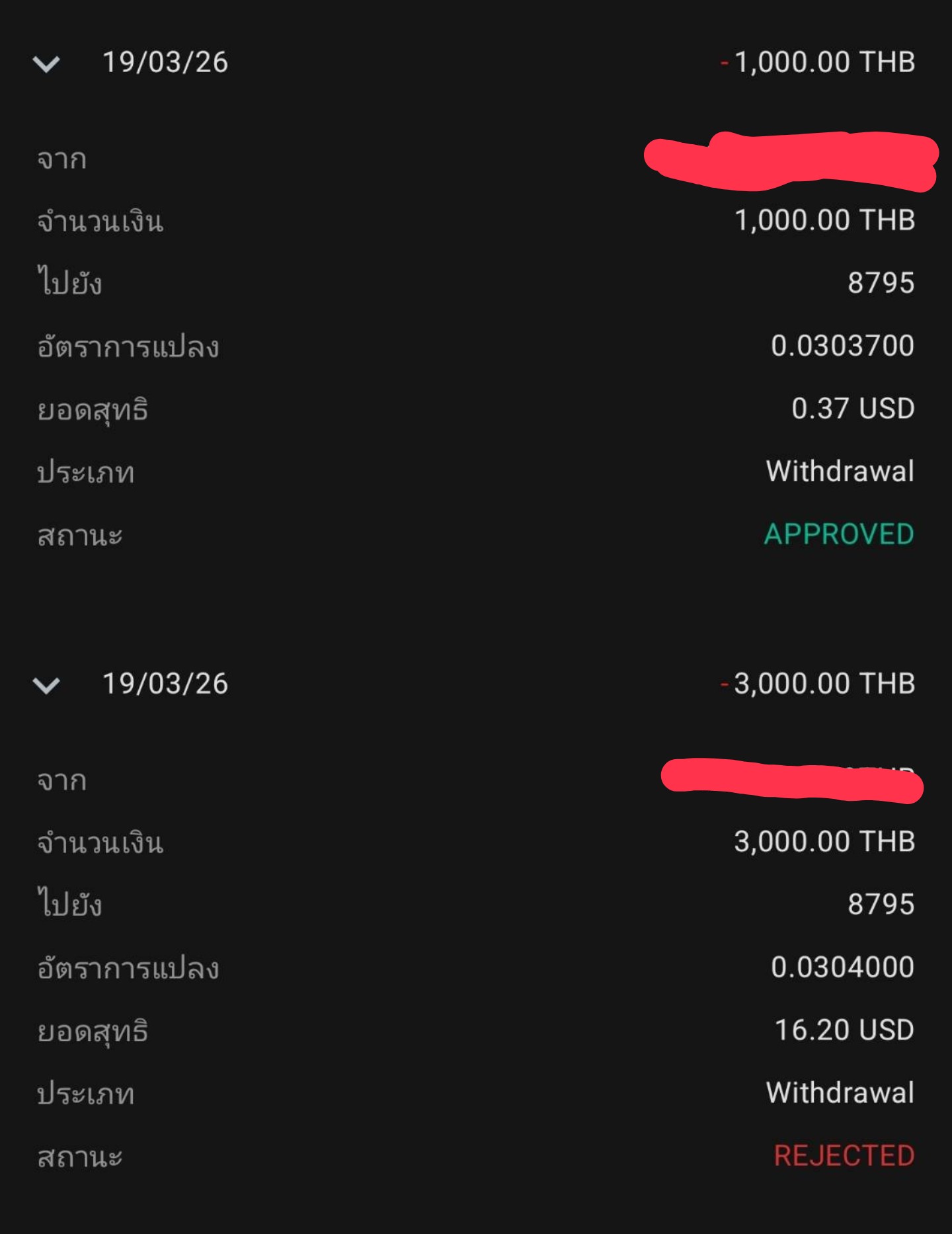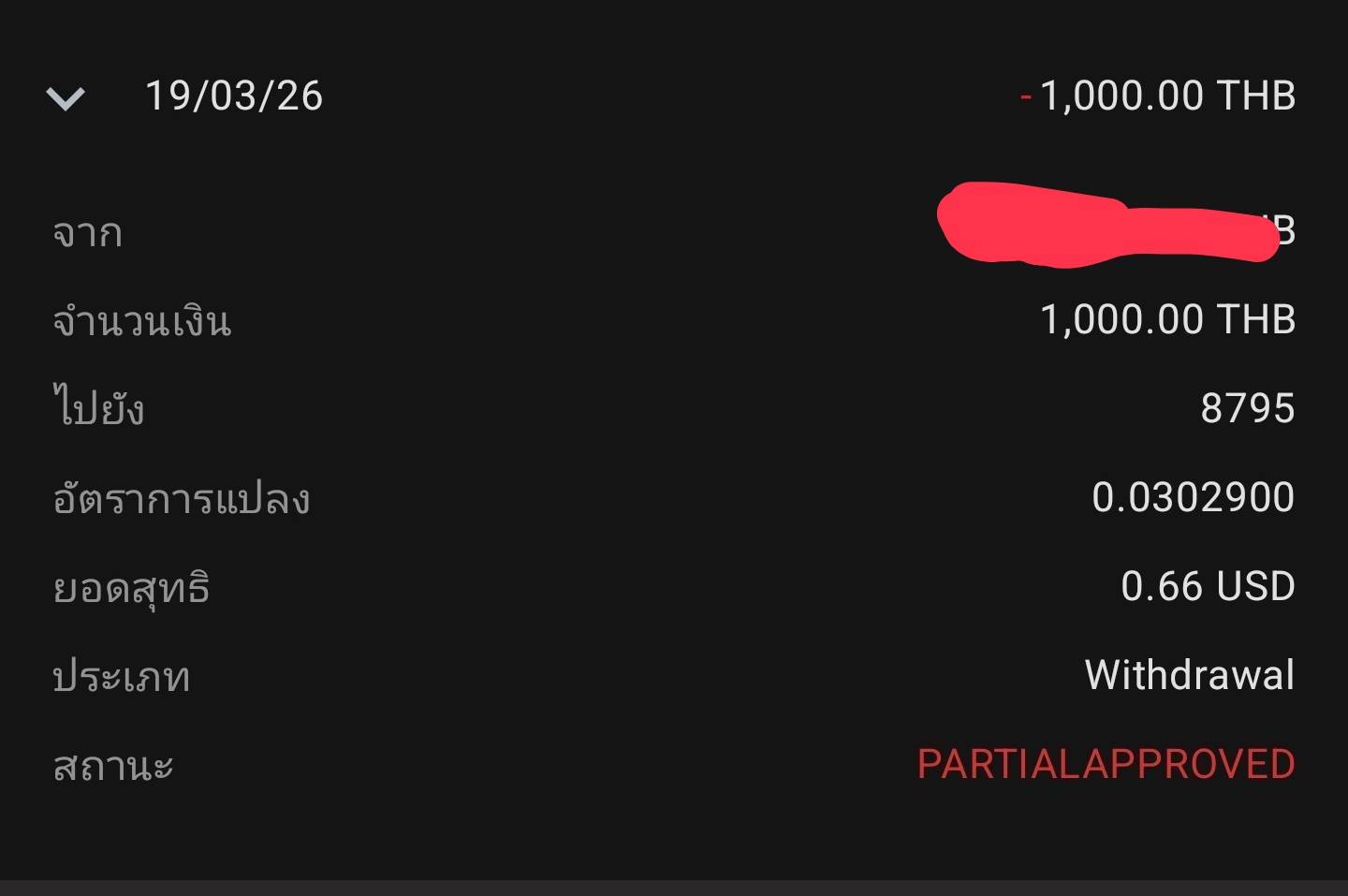 อันนี้ถอน3,000 เยอะเกินไป reject ซะเลย พระเจ้า แต่ approve ยอด1000ที้ได้ 0.37 USD