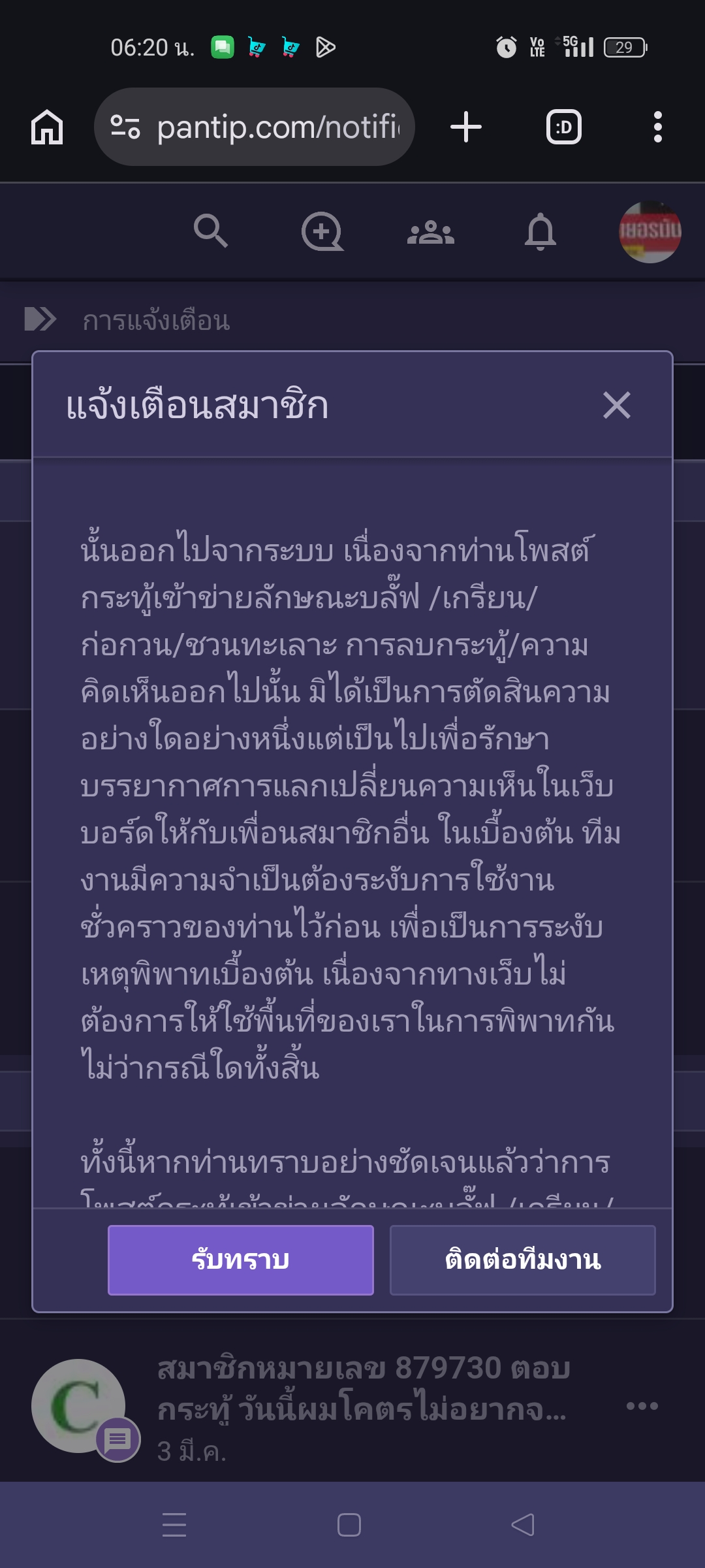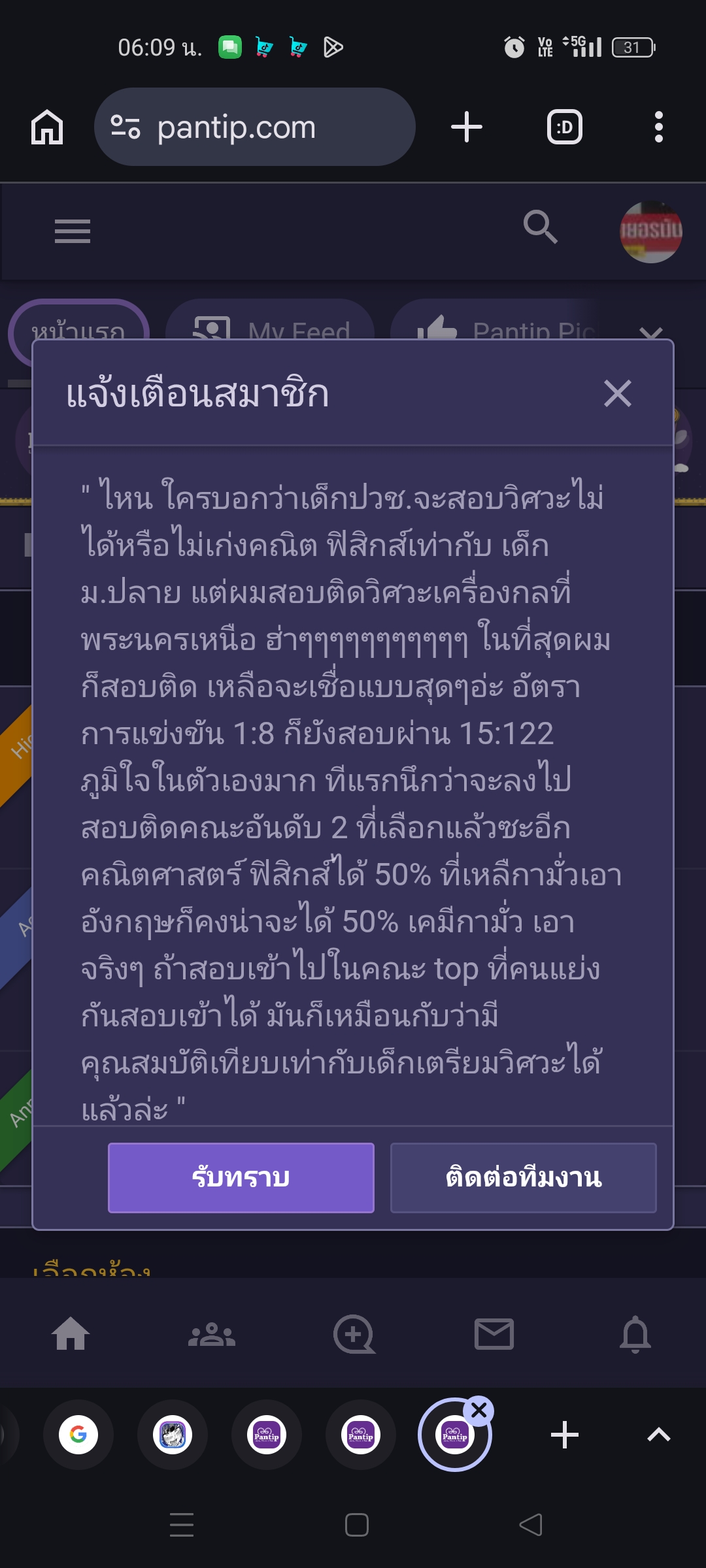 กระทู้นั้นของผมก็คงไม่โดนแจ้ง คนอื่นเขาก็มาแสดงความยินดีกันปกติ แต่มีเเต่เม้นเดียวที่มาหาว่าผมอวด ดูประหลาดดี ผมเลยแจ้งลบข้อความไป แต่ดันกลายเป็นมาโดนลบโพสต์ แล้วก็มาโดนเตือนเอาเฉยๆ