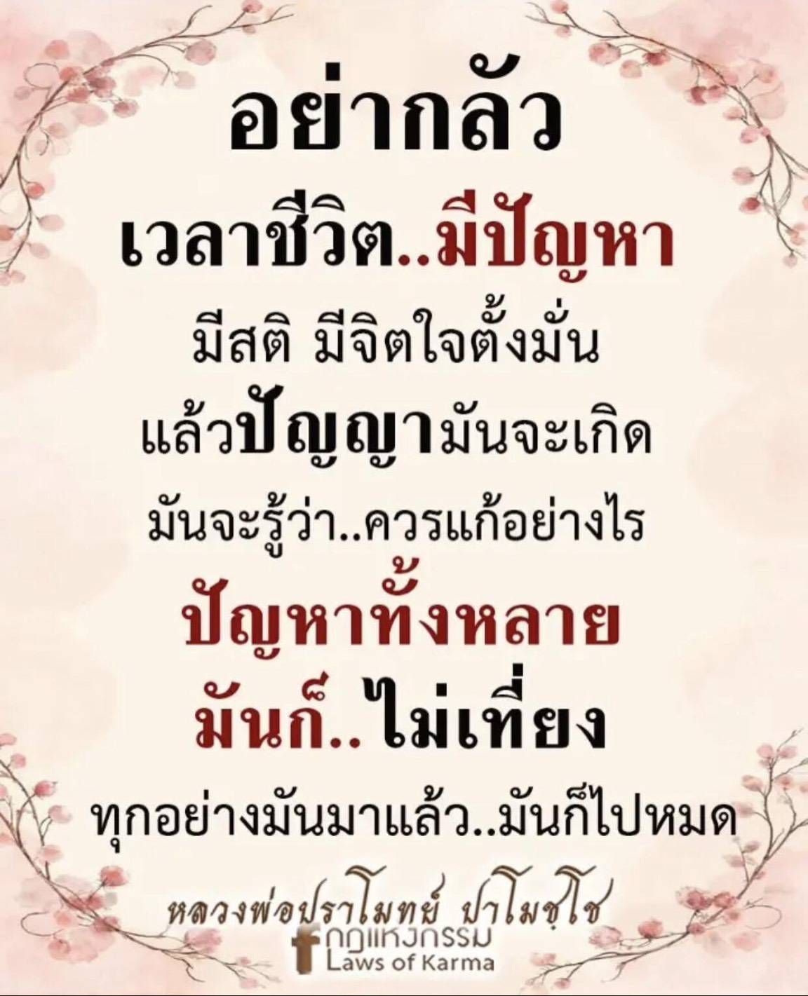 อย่ากลัวเวลาชีวิตมีปัญหามีสติมีจิตใจตั้งมั่นแล้วปัญญาจะเกิด ปัญหาทั้งหลายมันก็ไม่เที่ยงมันมาแล้วก็ไปหมด