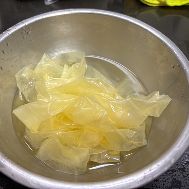 ผมเองก็ไม่แน่ใจว่าที่เค้าขายๆกัน เค้าต้องเอาไปลวกหรือเปล่า แต่ผมก็แช่น้ำเอานิ่มหน่อย แต่ก็ออกมาไม่ได้แข็งอะไร