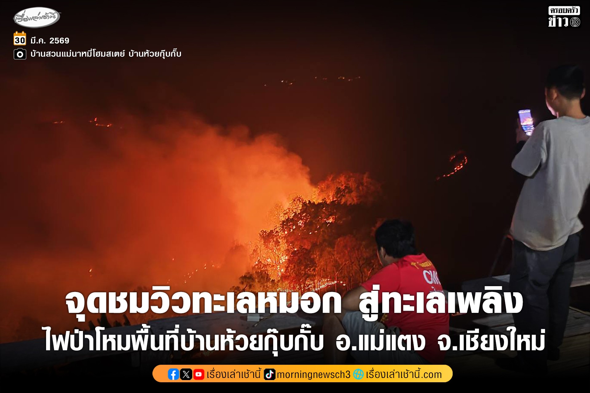 จากจุดชมวิวทะเลหมอก กลายเป็นทะเลเพลิง ในพื้นที่บ้านห้วยกุ๊บกั๊บ อำเภอแม่แตง จังหวัดเชียงใหม่