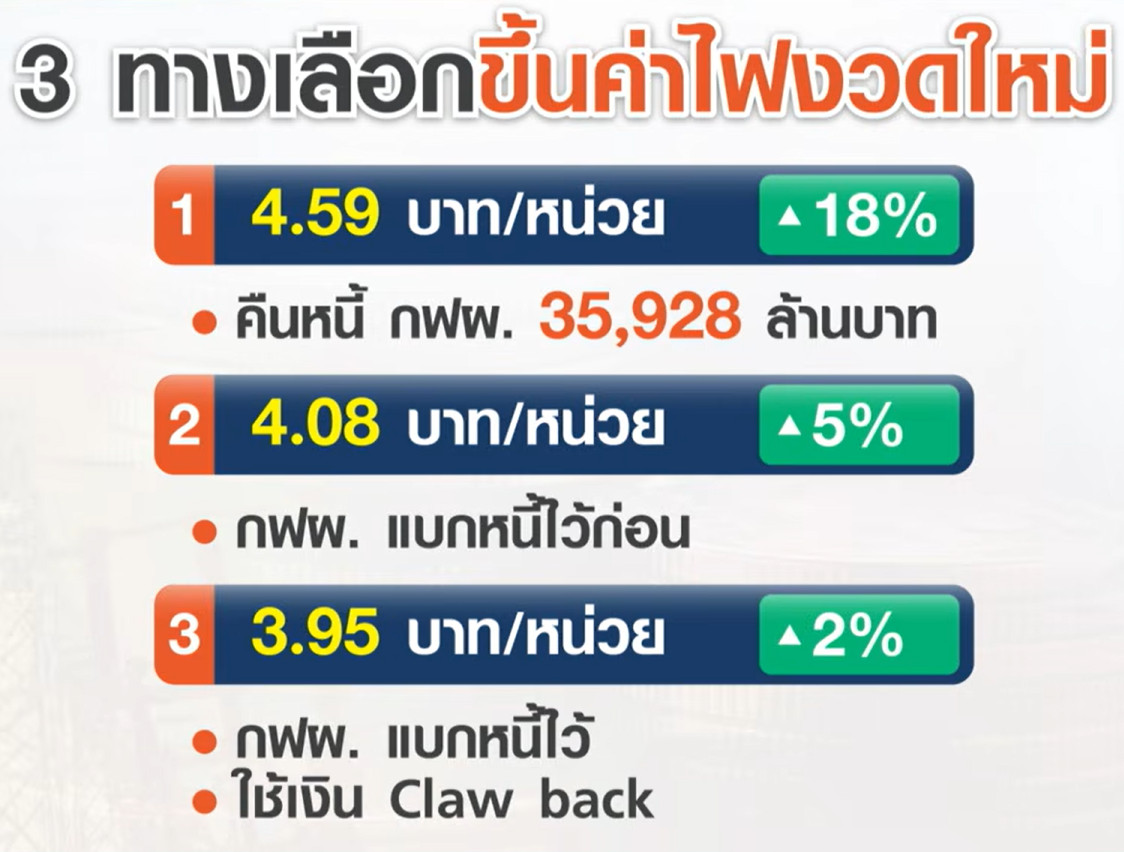โครงสร้างค่าไฟที่ผูกกับต้นทุนจริงผ่านค่าไฟฟ้าฝันแปร(Ft) ทำให้ราคาในงวดล่าสุดมีโอกาส