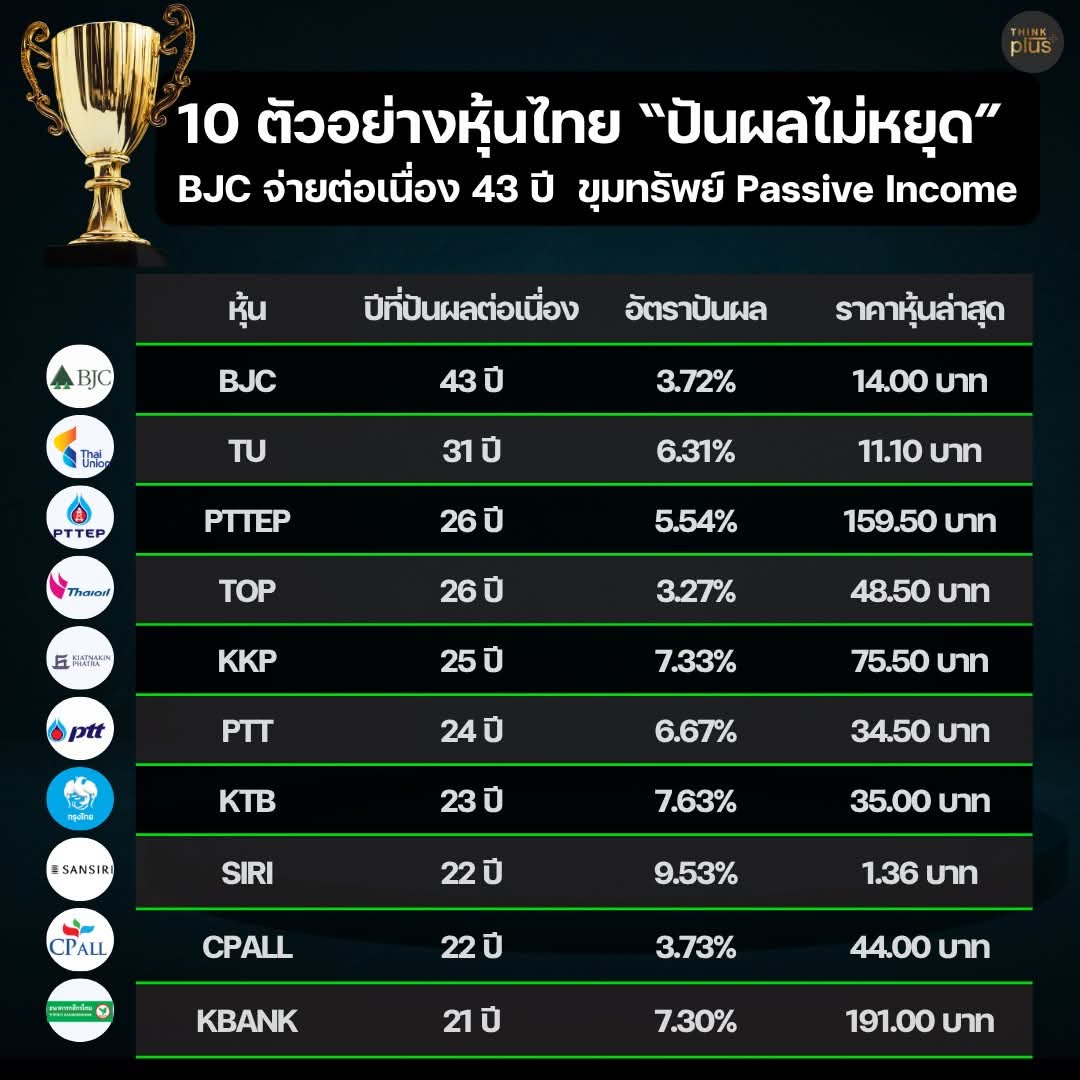 10 ตัวอย่างหุ้นไทย ปันผลต่อเนื่องมานาน 📍