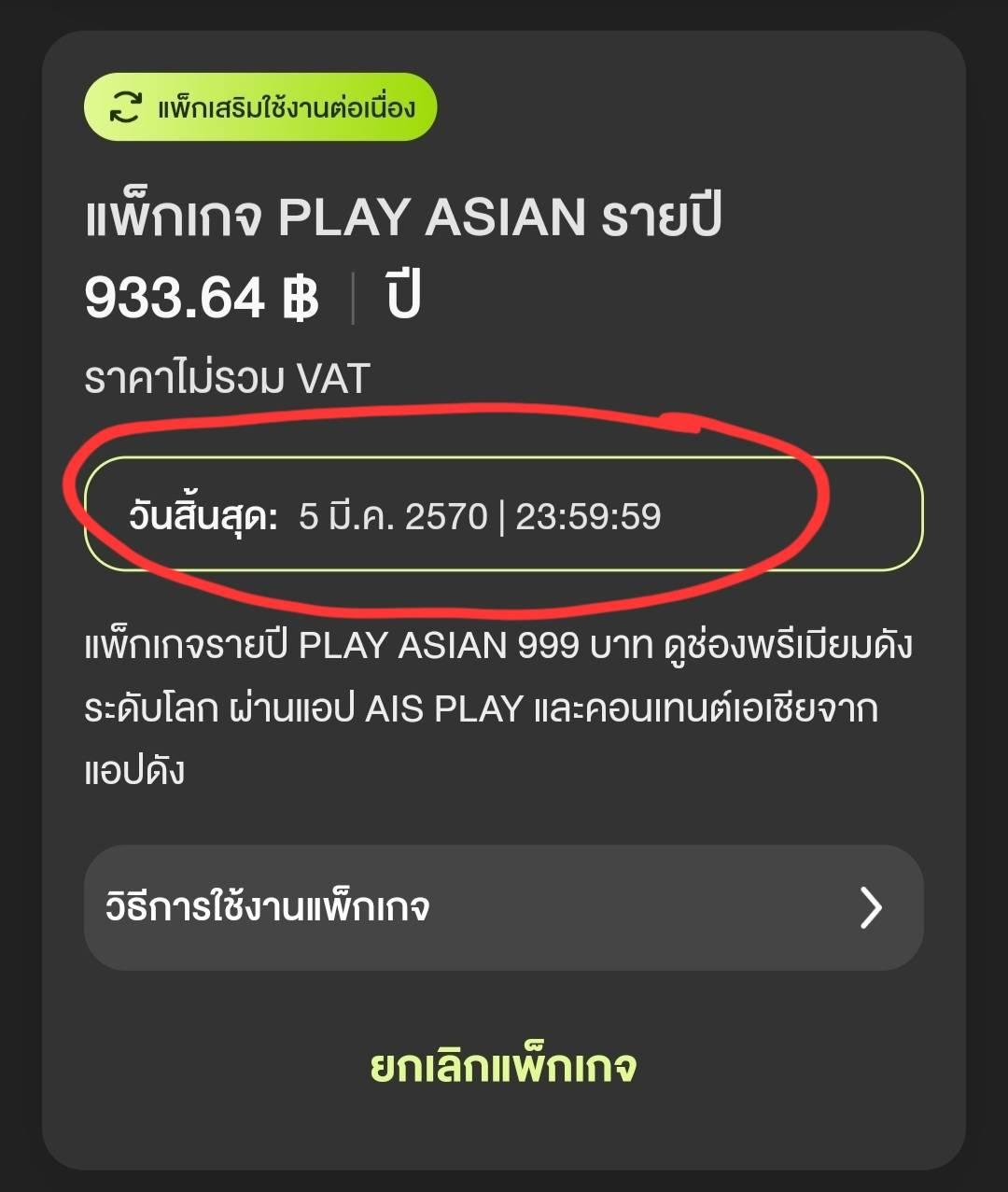 สมัครแพ็คเกจ Play Asian รายปี แต่ไม่สามารถต่อ VIp WeTV ได้