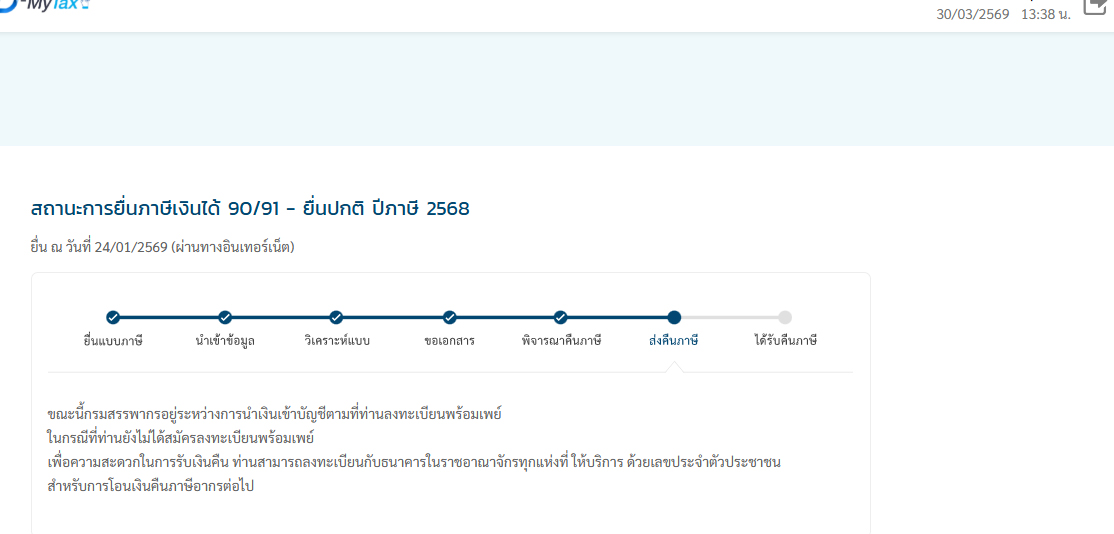 ซึ่งยื่นตั้งแต่ 24 มกราคม 2569 จนถึงตอนนี้ ยังไม่ได้เงินคืนเลย