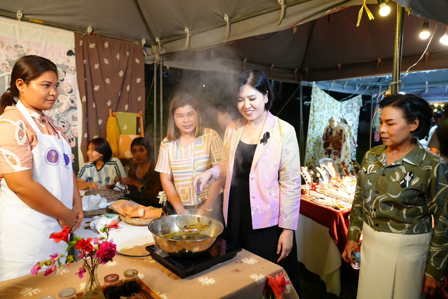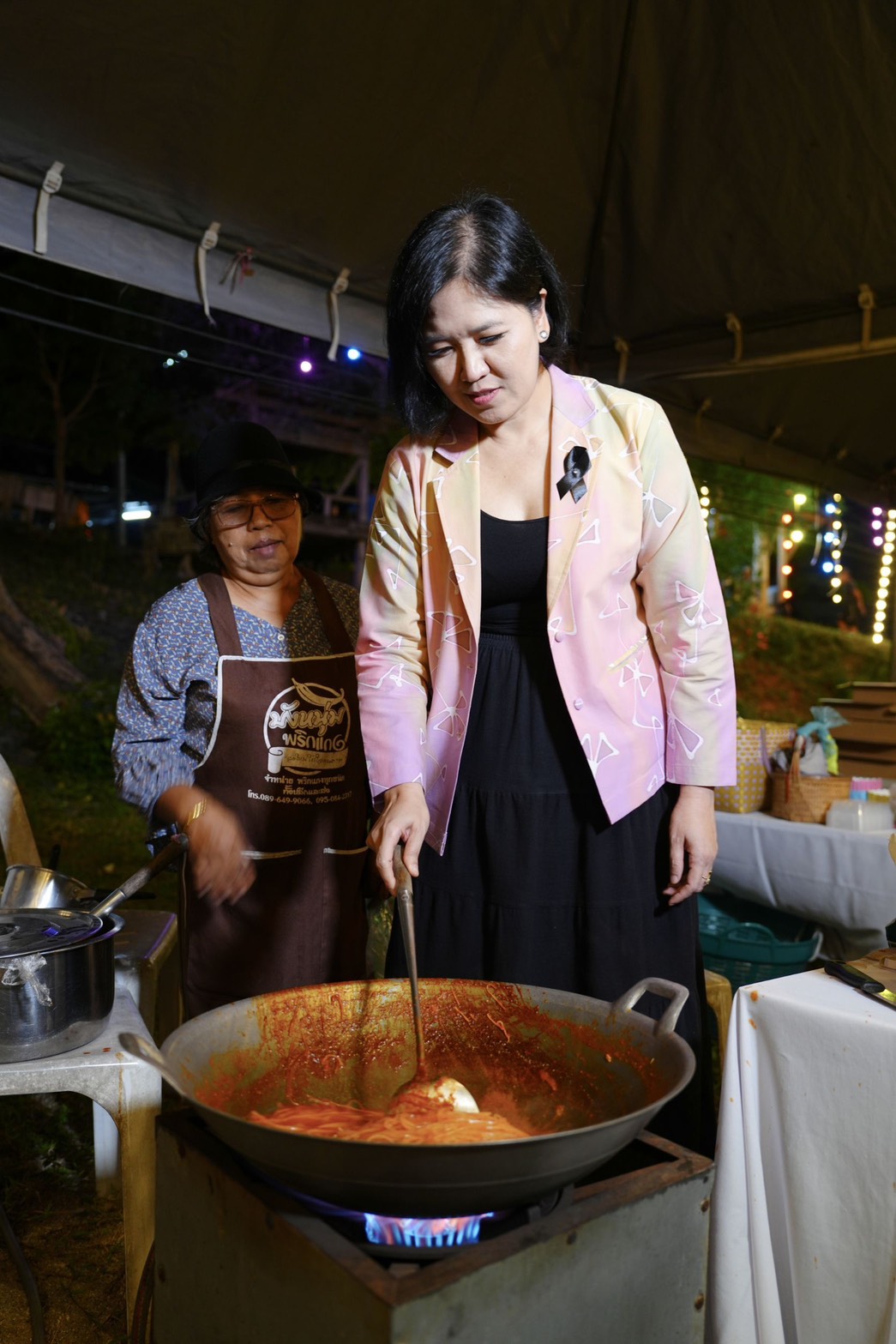ในโอกาสนี้ ประธานและคณะ ได้รับชมการแสดงศิลปวัฒนธรรม โนราศิลป์ ถิ่นใต้ และได้เยี่ยมชมกิจกรรม Workshop อาทิ การทำผ้า Eco print ผ้ามัดย้อม ผ้าบาติกจากสีธรรมชาติ การทำสบู่จากเปลือกมังคุด การถักร้อยสร้อยข้อมือจากวัสดุธรรมชาติและลูกไม้จากเขาหลวง รวมถึงเยี่ยมชมการสาธิตและชิมอาหารพื้นถิ่นของชุมชน เช่น ข้าวยำเครื่องสมุนไพร ผัดหมี่กะทิปักษ์ใต้ แกงไก่มะเดื่อ ไข่เจียวใบเล็บครุฑ น้ำส้มแขกโซดา ขนมไทยพื้นบ้าน ทุเรียนห่อกาบหมากผัดหมี่กะทิปักษ์ใต้ ขนมต้มแดง ชาเลือดมังกร ทอดมันลูกเห็บ ขนมลา และขนมไทยถิ่นใต้ ซึ่งสะท้อนอัตลักษณ์อาหารใต้ได้อย่างโดดเด่น