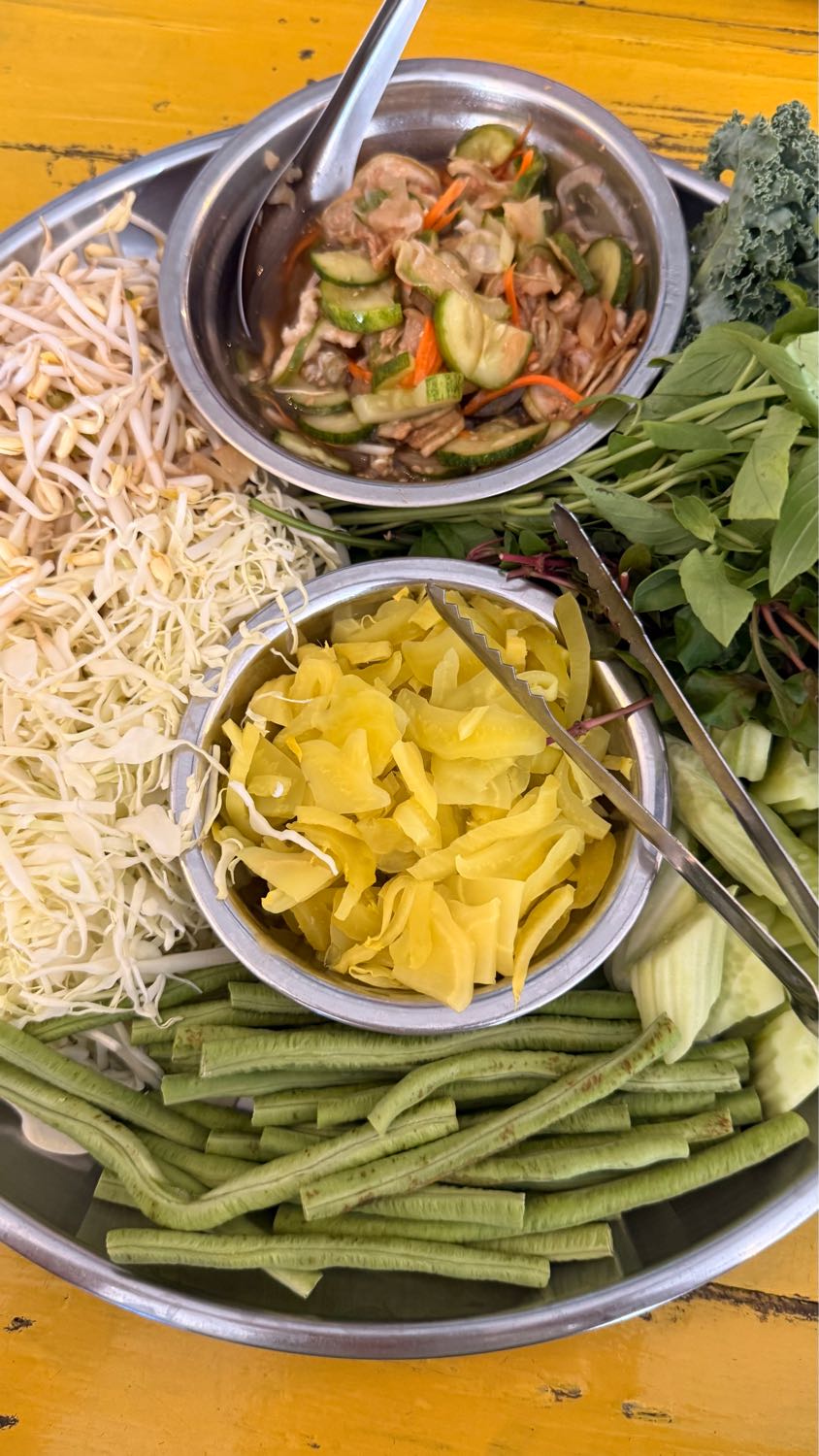 ร้านเสิรฟผักเคียง มาถาดใหญ่มากๆนะคะ มีผักดอง 1 ชาม และผักอื่นๆ เยอะเลย เรียกอะไรบ้าง ดูเอานะคะ