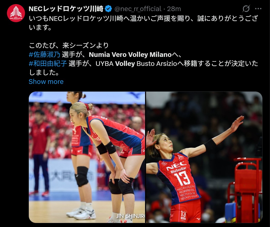 สิ้นสุดการรอคอย UYBA Busto Arsizio คว้าตัว Wada Yukiko,Vero Volley Milano คว้าตัว Sato Yoshino ในฤดูกาล 2026/27