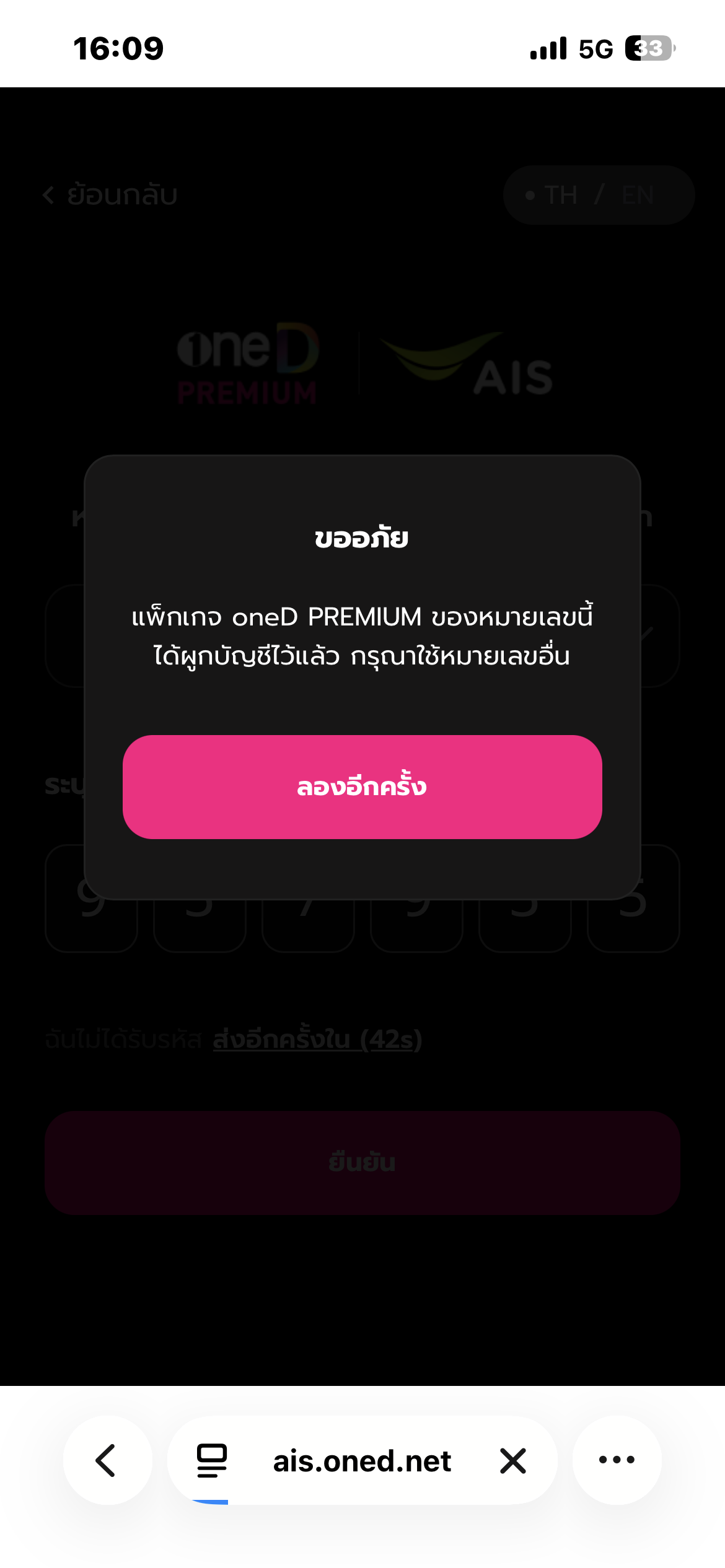 สมัคร OneD ผ่าน myAis แต่ยังไม่ได้รับ sms