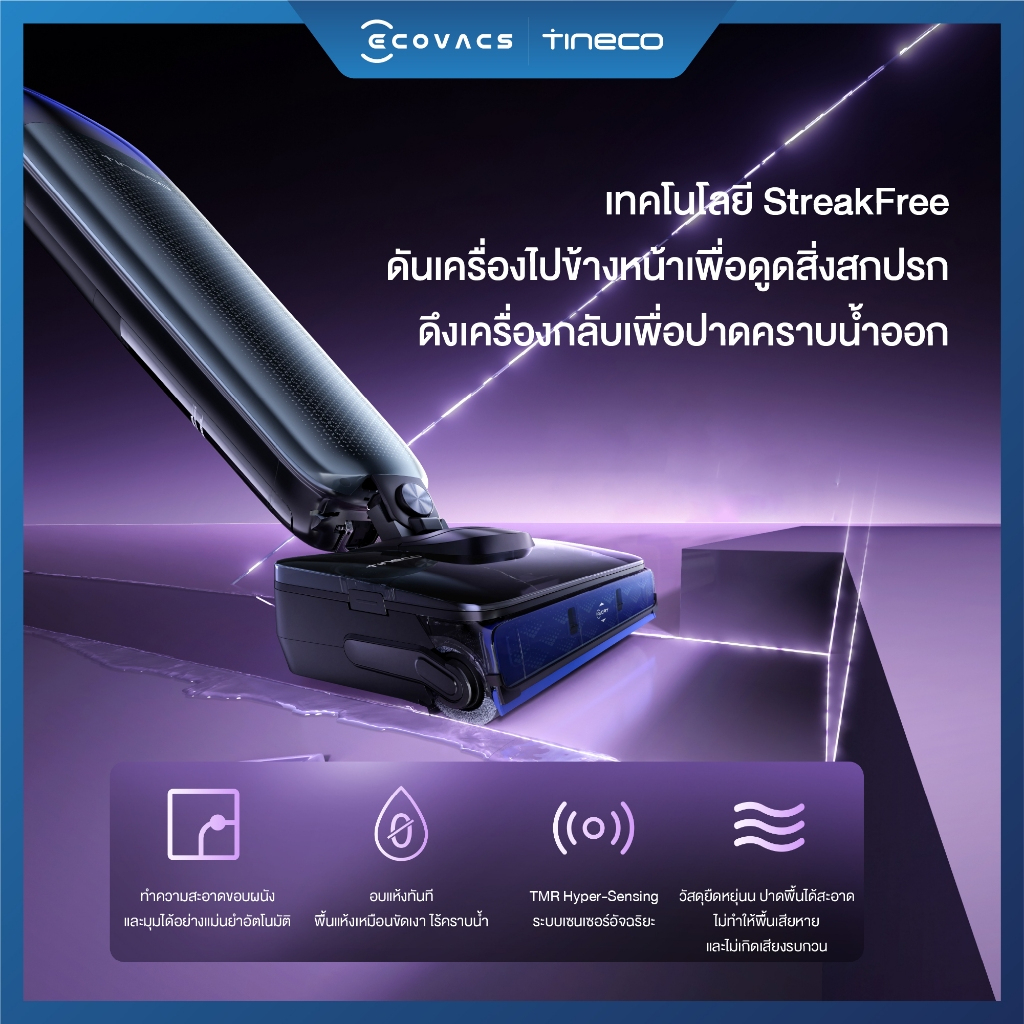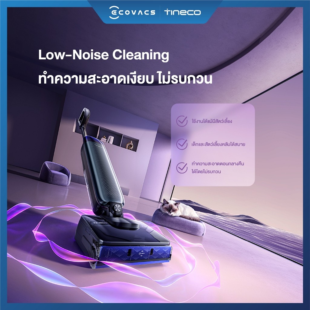 ช่วงที่ต้องทำความสะอาดพื้นทุกวัน เครื่องที่ช่วยประหยัดเวลาได้จริงคือ เครื่องล้างพื้นไร้สาย Tineco S7 เพราะดูดและถูได้ในรอบเดียว แรงดูด 22 kPa จัดการทั้งฝุ่น คราบเปียก และขนสัตว์ได้ไว ตัวเครื่องนอนราบ 180° เข้าถึงใต้โซฟาหรือเตียงได้ง่าย พื้นแห้งค่อนข้างเร็ว ไม่ทิ้งคราบน้ำให้ต้องเดินซ้ำ เหมาะกับบ้านที่มีเด็ก สัตว์เลี้ยง หรือคนที่อยากให้บ้านสะอาดแบบไม่เสียแรงมาก 🌀