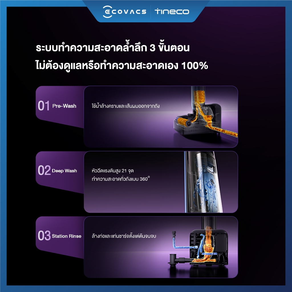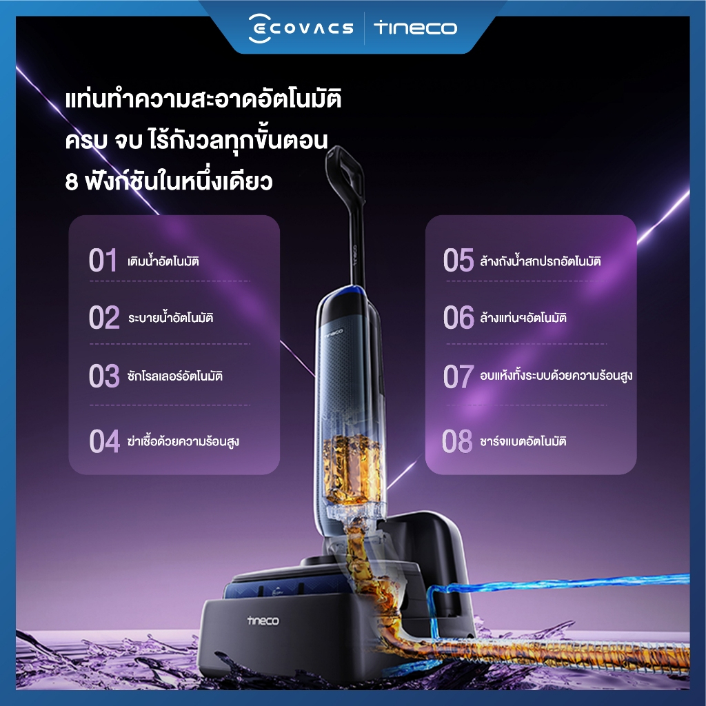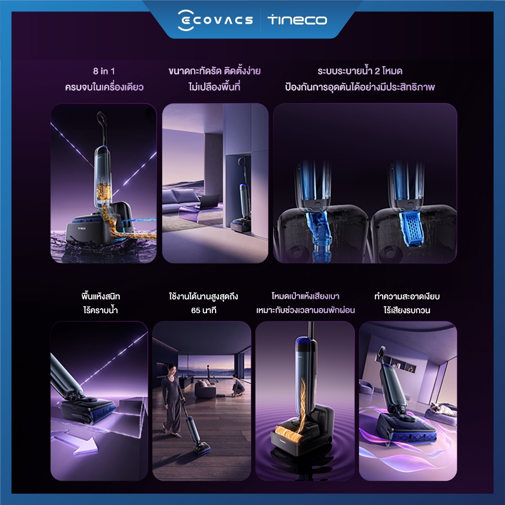 อีกจุดที่ใช้งานแล้วรู้สึกสบายคือแท่น Smart Refresh Station 2.0 ที่เติมน้ำสะอาดและระบายน้ำเสียอัตโนมัติ ลดขั้นตอนหลังใช้งานได้เยอะ ซักโรลเลอร์ด้วยน้ำอุ่นและอบแห้ง 85°C ใน 5 นาที พร้อมโหมดเงียบ ≤45 dB(A) ใช้ตอนเช้าหรือช่วงพักผ่อนได้ไม่รบกวนคนในบ้าน สำหรับคนที่มองหา เครื่องล้างพื้นไร้สาย Tineco S7 ไว้ใช้กับคอนโดหรือบ้านหลายห้อง รุ่นนี้ให้ทั้งความคล่องตัว ใช้งานต่อเนื่องได้สูงสุด 65 นาที และดูแลง่ายหลังใช้งาน ✨