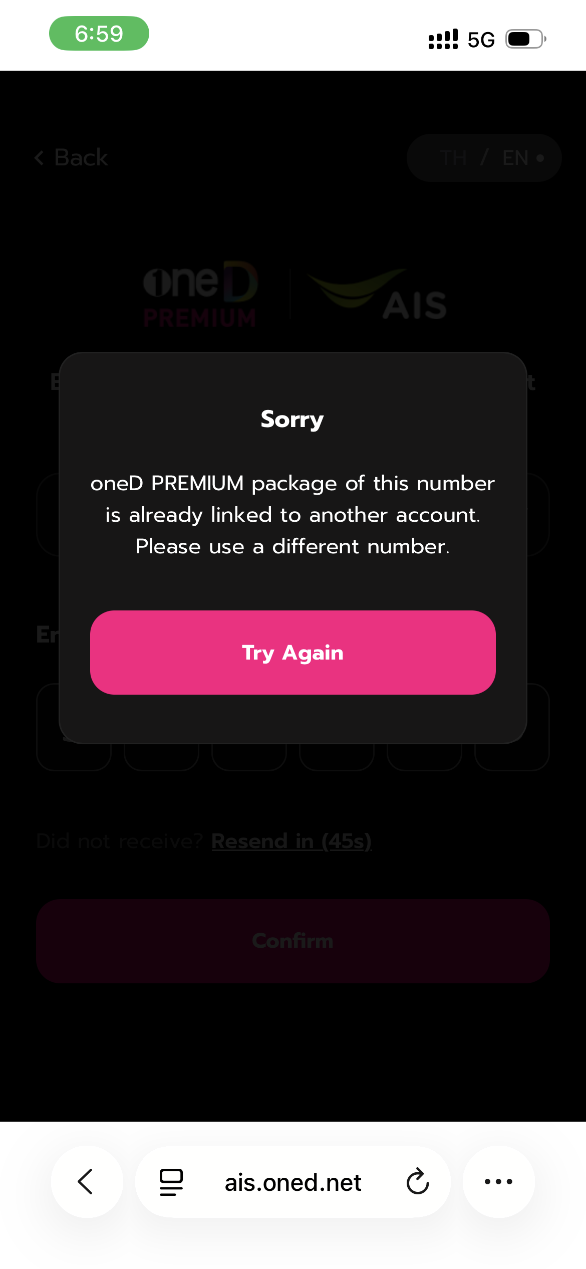 สมัคร oneD PREMIUM ผ่าน AIS แต่ระบบไม่ยอมเชื่อมบัญชี