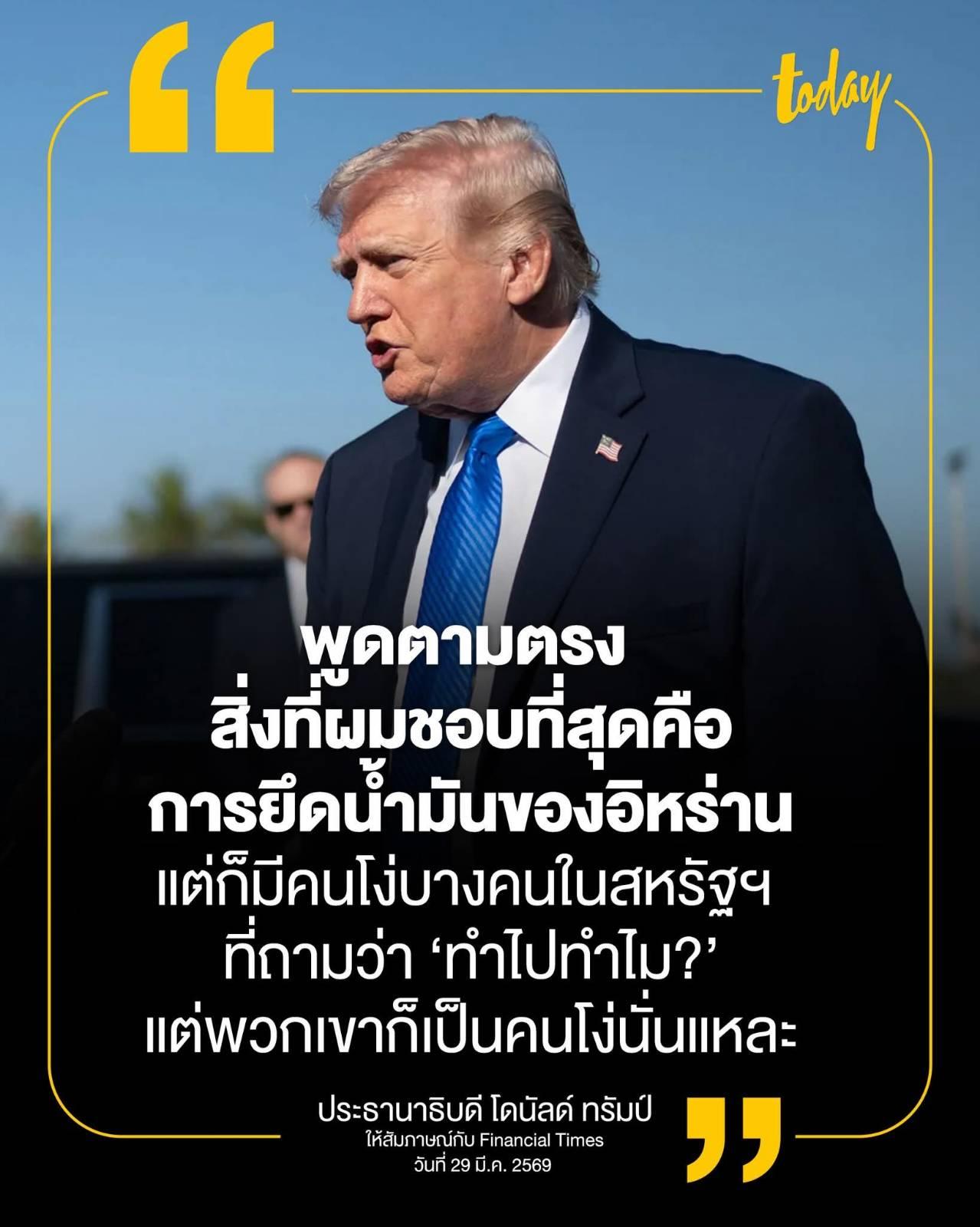 ทรัมป์พูดชัด อยากยึดน้ำมันอิหร่าน แต่คนโง่ ๆ ในเมกาบางคนไม่เข้าใจ