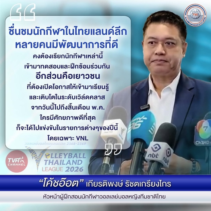 โค้ชอ๊อด เกียรติพงษ์ รัชตเกรียงไกร เฮดโค้ชทีมชาติไทยออกมาเปิดเผยว่ามีแผนจะพาทีมวอลเลย์บอลหญิงไทยไปเก็บตัวฝึกซ้อมที่ “ญี่ปุ่น” ล่วงหน้า ก่อนล่าเหรียญเอเชียนเกมส์จะเริ่มขึ้น สมาคมวอลเลย์บอล