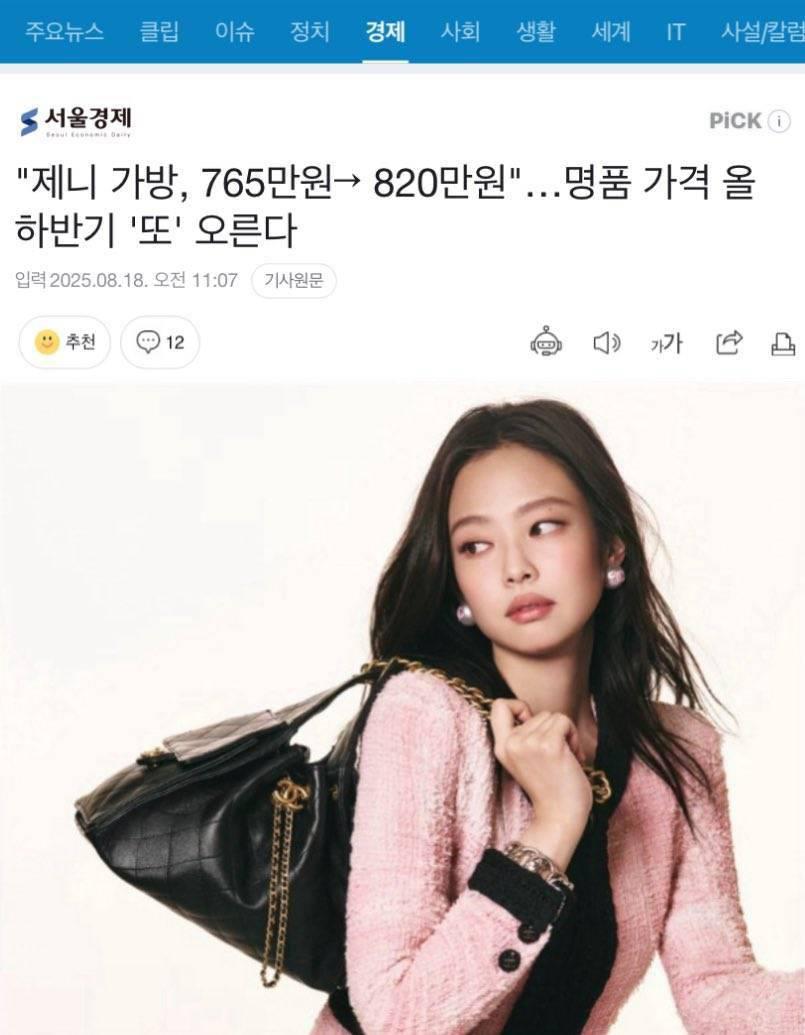 “กระเป๋าเจนนี่” จาก 7.65 ล้านวอน เป็น 8.2 ล้านวอน ราคากระเป๋าของเจนนี่พุ่งสูงขึ้นอีกครั้งในช่วงครึ่งหลังของปี