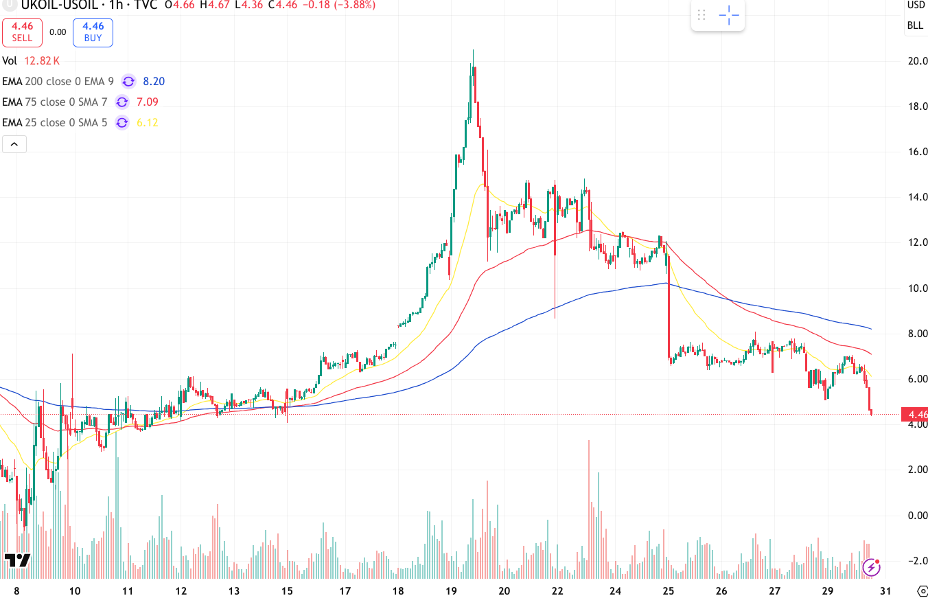 ความผันผวนของราคาน้ำมันยุโรป(Brent) กับอเมริกา(West Texas) ลดลงจนเข้าสู่ระดับปรกติแล้ว