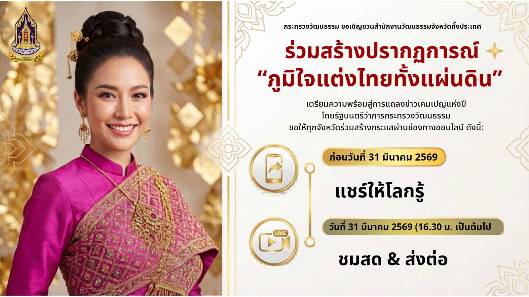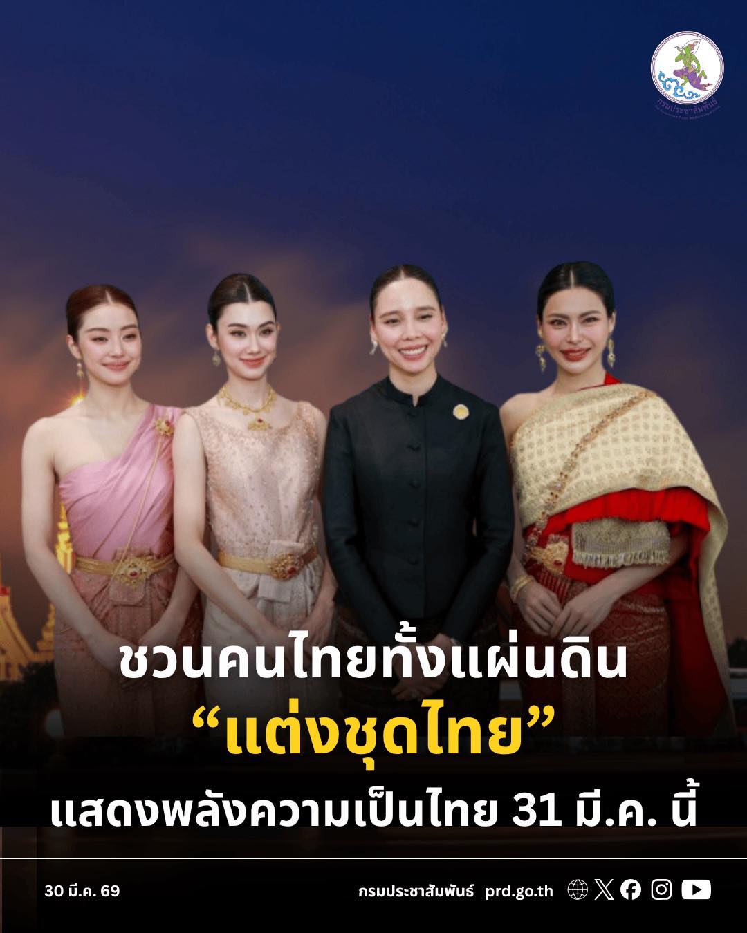 💖รัฐบาลชวนคนไทย ร่วมกิจกรรม “ภูมิใจแต่งไทยทั้งแผ่นดิน” เพื่อส่งเสริมอัตลักษณ์และวัฒนธรรมไทย วันพรุ่งนี้ (31 มี.ค. 2569)