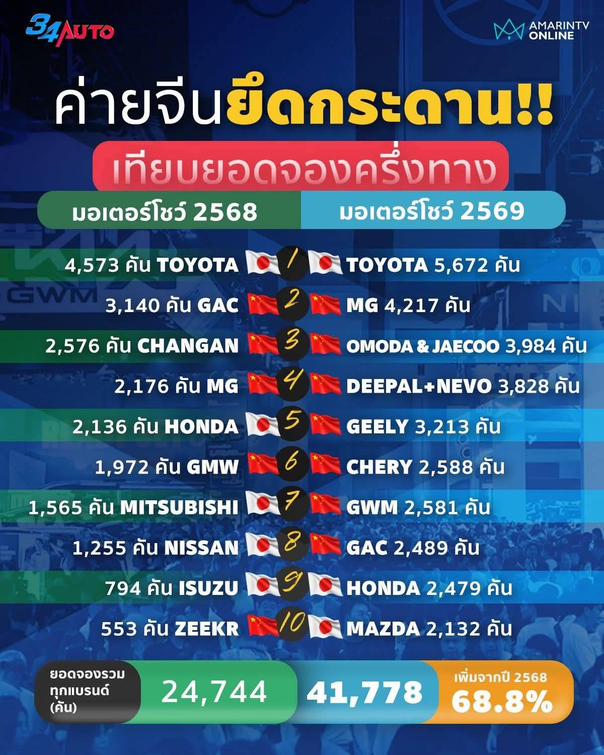 ครึ่งทาง Motor Show 2026 ยอดจองรวมถือว่าดีเกินคาด เติบโตกว่าช่วงเดียวกันของปีก่อน 68.8%