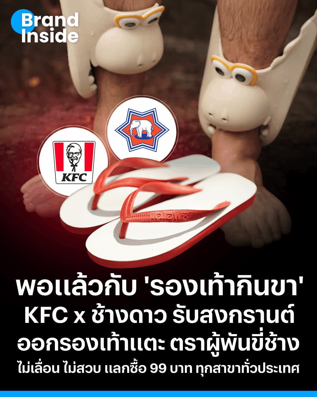 สำหรับ KFC เราเชื่อว่าการทำการตลาดที่ดี คือการหยิบเรื่องเล็ก ๆ แบบนี้มาคิดต่อให้ใหญ่ สนุกให้สุด และต้องใช้งานได้จริง จึงเป็นที่มาของ ‘รองเท้าแตะผู้พันขี่ช้าง’ ไอเท็มพิเศษรับสงกรานต์ ที่ออกแบบมาเพื่อให้คนไทยเล่นน้ำได้เต็มที่ เดินได้สบาย ไม่ต้องกังวลเรื่องรองเท้ากัด