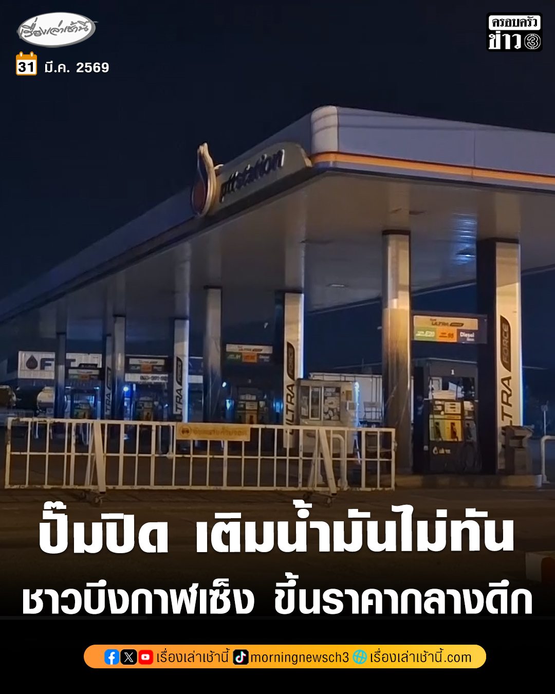 ชาวบึงกาฬสุดเซ็ง รีบไปเติมน้ำมัน หลังประกาศขึ้นราคากลางดึก แต่ปั๊มปิดหมดตั้งแต่ 3 ทุ่ม