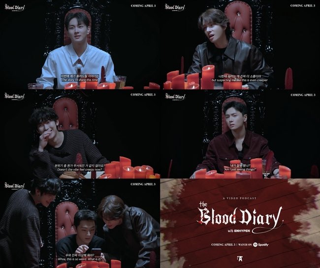 ซีรีส์เรื่องแรกที่จะนำเสนอโดย ENHYPEN มีชื่อว่า "The Blood Diary" ซึ่งทาง HYBE ได้ปล่อยตัวอย่างแรกของรายการออกมาพร้อมกับการประกาศ ในตัวอย่างนั้น สมาชิกวง ENHYPEN ผลัดกันเล่าเรื่องลึกลับจากทั่วโลก ขณะที่เล่าเรื่อง สมาชิกก็พยายามหา "คนโกหก" ที่ซ่อนอยู่ภายในกลุ่ม และเชิญชวนแฟนๆ ให้ร่วมไขปริศนาไปพร้อมกับพวกเขา
