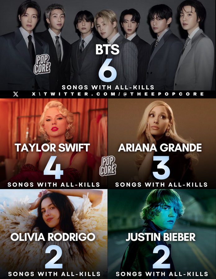 ศิลปินในโลกนี้ที่มีจำนวนเพลงที่สามารถคว้า "Billboard All Kill" ได้มากที่สุด