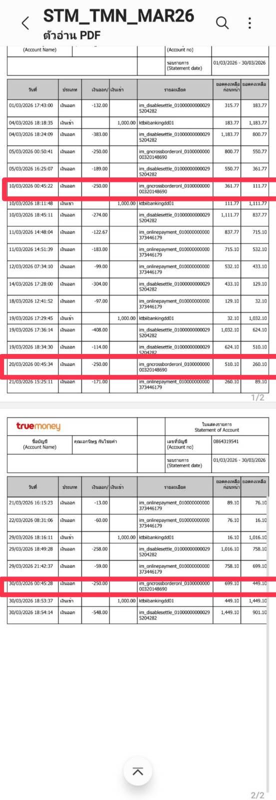 โดนหักเงินจาก Truemoney ยอดรวมตอนนี้99บาทค่ะ