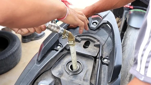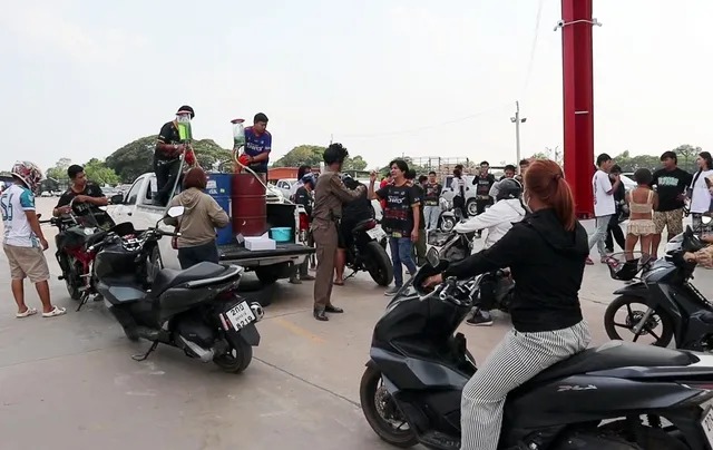 มีประชาชนแห่นำรถจักรยานยนต์มาต่อคิวยาวเหยียด เพื่อใช้สิทธิ์เติมน้ำมันราคาประหยัดในราคาแค่ 7 บาท