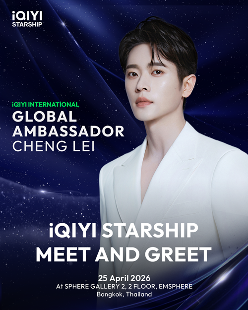 iQIYI International ประกาศข่าวดีอย่างเป็นทางการ ให้แฟน ๆ ในประเทศไทยกรี๊ดสุดเสียง กับงาน 2026 iQIYI Starship Meet and Greet in Thailand IQIYI INTERNATIONAL GLOBAL AMBASSADOR "CHENG LEI" ในวันเสาร์ที่ 25 เมษายน 2569 โดยมี “เฉิงเหล่ย” (Cheng Lei) iQIYI International Global Ambassador คนล่าสุด จะเดินทางมาร่วมกิจกรรมสุดเอ็กซ์คลูซีฟในประเทศไทยเป็นครั้งแรก ณ Sphere Gallery 2 ศูนย์การค้า Emsphere เพื่อพบปะแฟน ๆ ชาวไทยอย่างใกล้ชิด