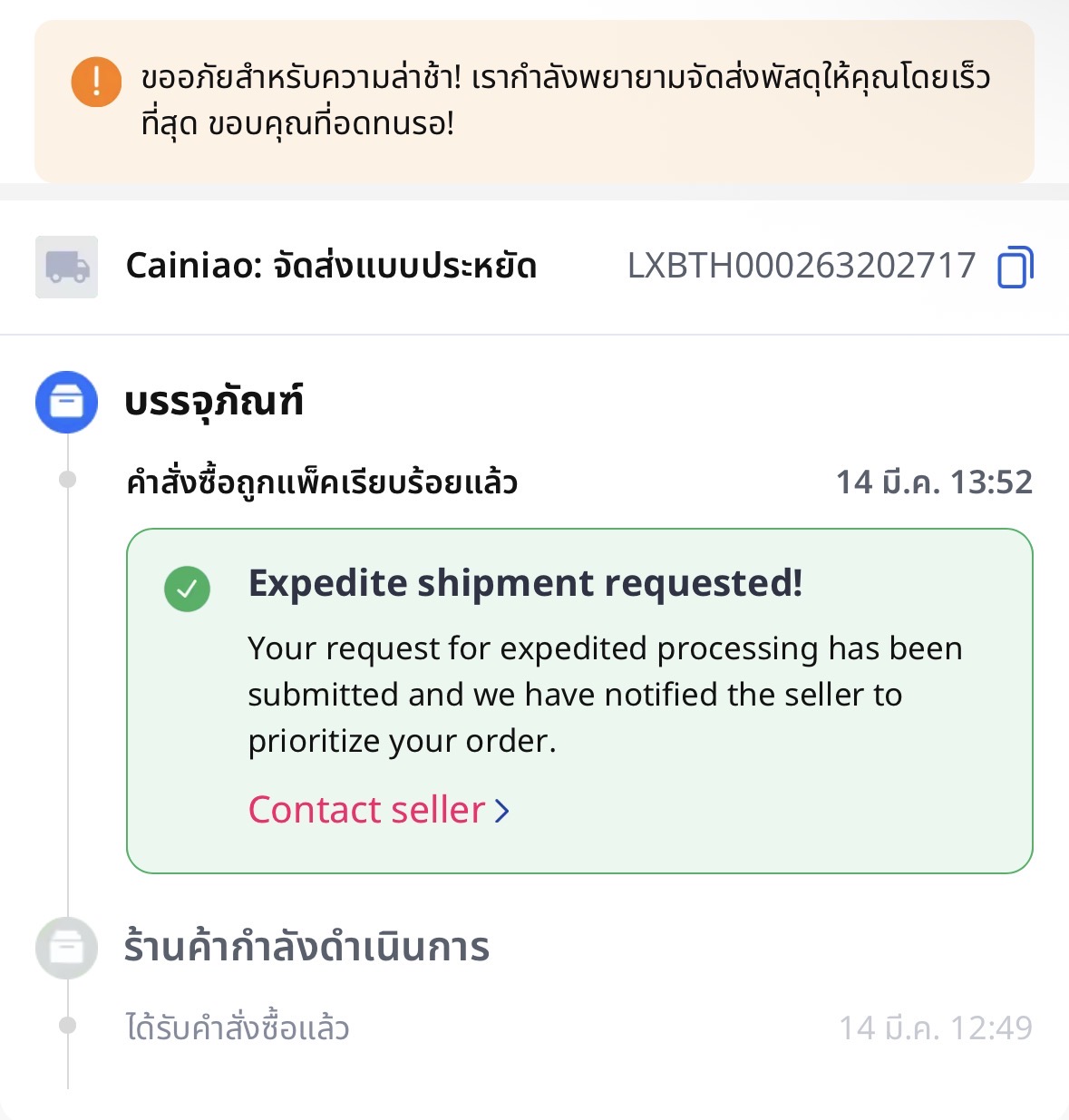 ผมสั่งของตั้งแต่วันที่14/3/69จนถึงตอนนี้31/3/69 บอกของจะถึงตั้งแต่วันที่25 จนตอนนี้ของก็ยังไม่มีความคืบหน้า สรุปร้านส่งจริงมั้ยครับ เป็นร้านจีนทักไปถามก็มีแต่บอทที่ตอบ ตอนนี้เริ่มหัวเสียละ ปกติอีกแอพเขาอัพเดตให้ตลอด รอบนี้ผมคงตัดสินใจพลาด