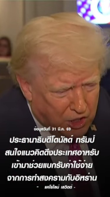 ทรัมป์ กําลังพิจารณาให้ชาติอาหรับช่วยค่าใช้จ่ายทําสงครามอิหร่าน