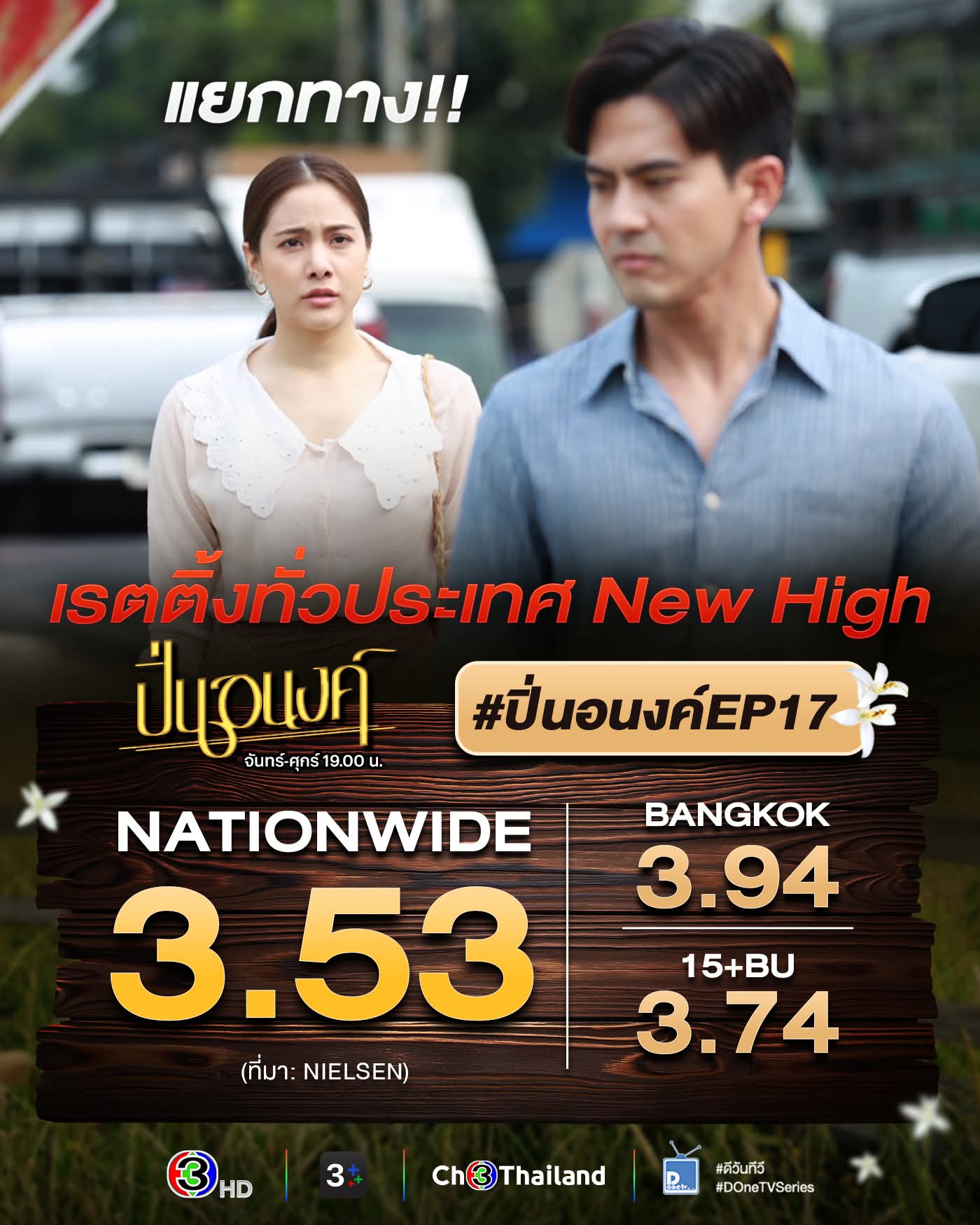 ช่อง 3 เรตติ้งปัง หนึ่งด้าวพุ่งไป 3.2 ข่าวนอกลู่ 4.5 ปิ่นอนงค์ 3.7