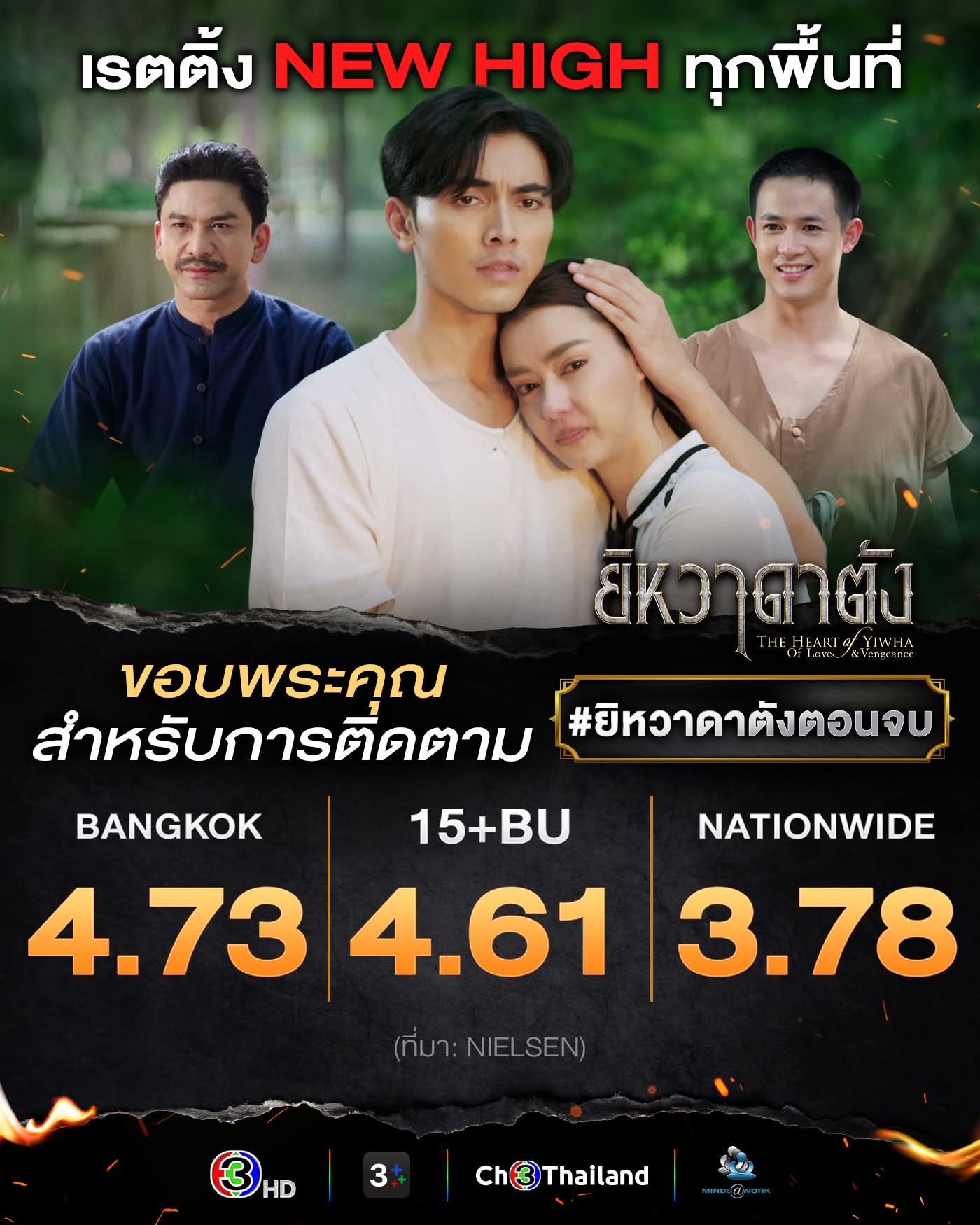 #ยิหวาดาตังตอนจบ เรตติ้ง New High ทุกพื้นที่ ขอบพระคุณแฟนๆ ทุกท่านที่ติดตามมาอย่างเหนียวแน่นตั้งแต่ต้นจนจบ . #ยิหวาดาตัง #TheHeartofYiwha ดูย้อนหลัง : https://ch3plus.com/drama/1769 #ดูทีวีกด33ดูออนไล