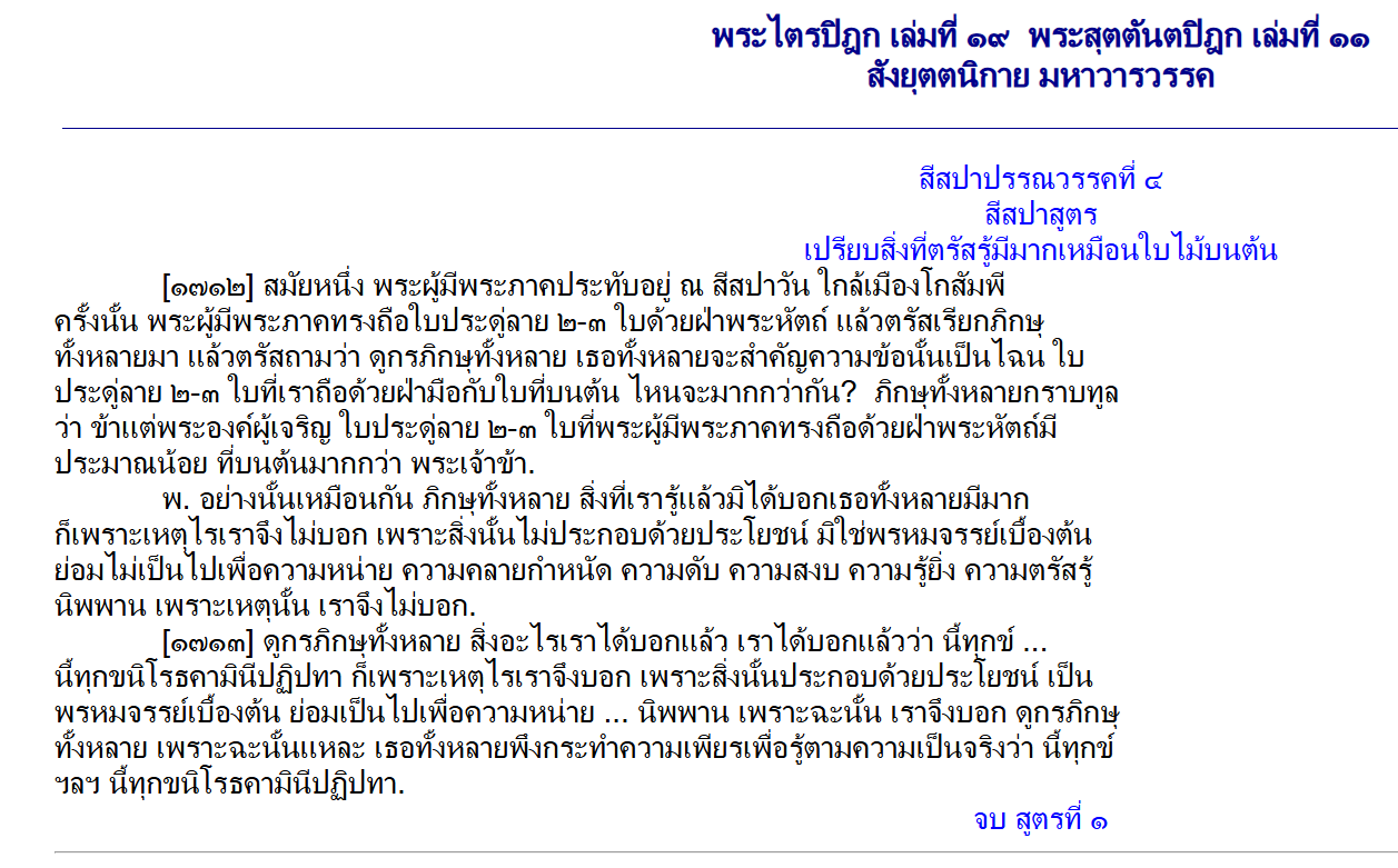 พระธรรมใบไม้นอกกำมือ มีแต่ของดีๆทั้งนั้นทำไมไม่เอามาไว้ในพระไตรปิฎก