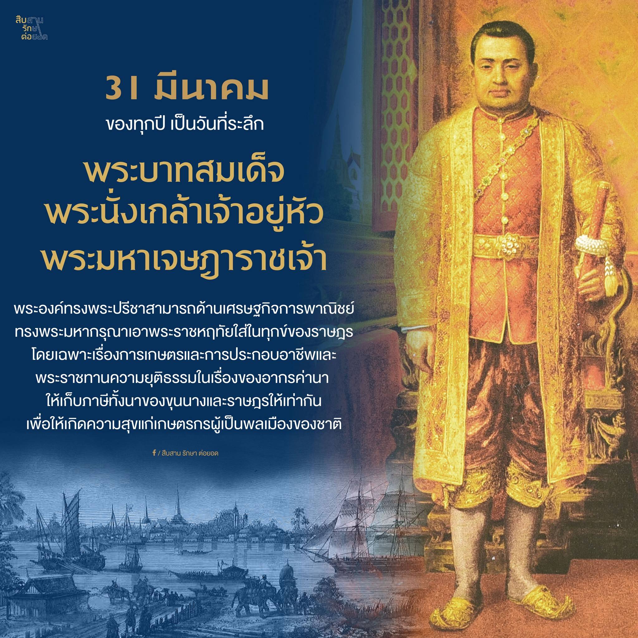 💛🙏 31 มีนาคม ของทุกปี เป็น “วันที่ระลึกพระบาทสมเด็จพระนั่งเกล้าเจ้าอยู่หัว พระมหาเจษฎาราชเจ้า” (รัชกาลที่ 3)