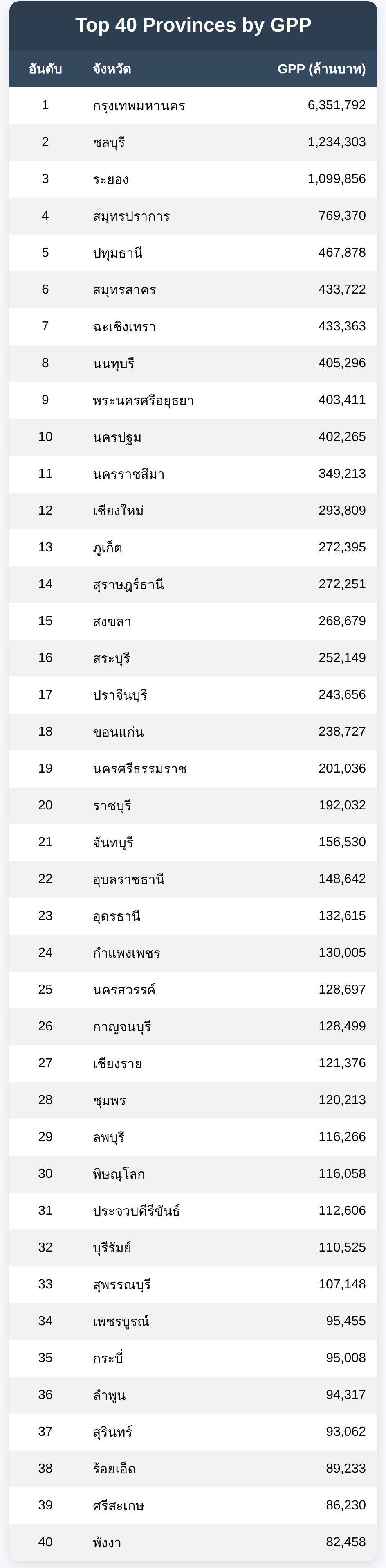 40 อันดับจังหวัดที่มี GDP สูงสุดปีล่าสุด เหมือนภาคใต้จะได้ 2 แชมป์คนใหม่