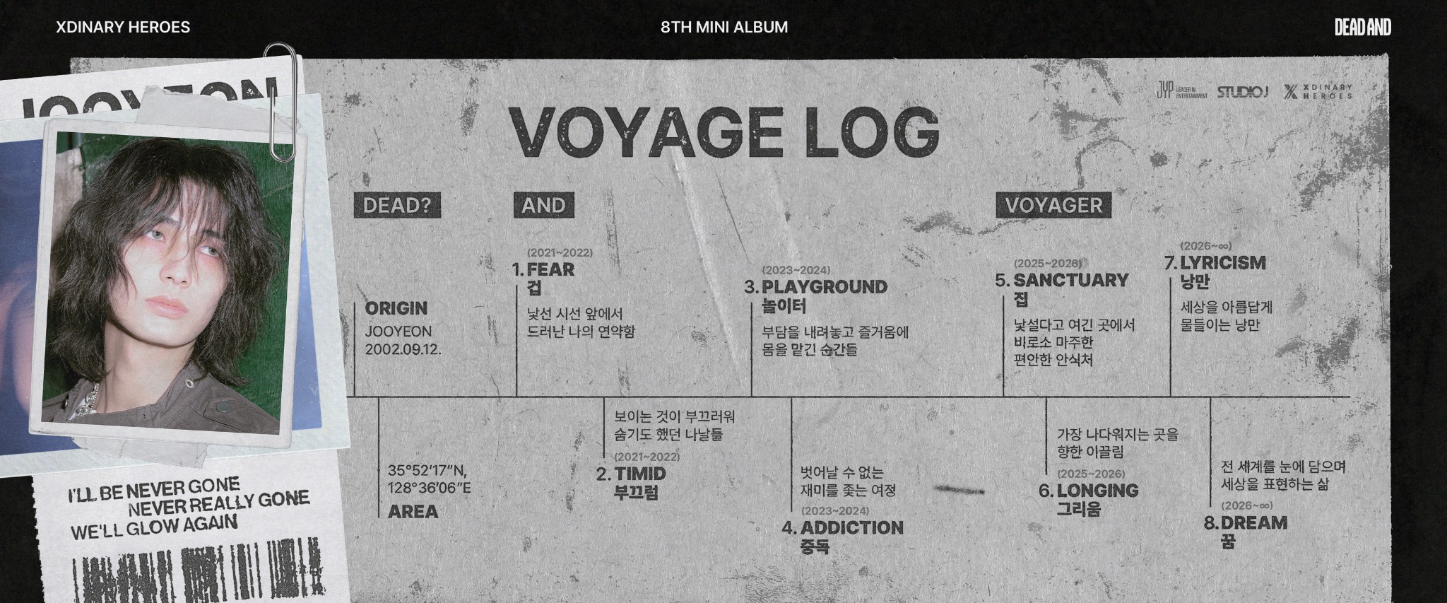 Xdinary Heroes <DEAD AND> Teaser Image 1, Voyage Log of #Jooyeon #JunHan