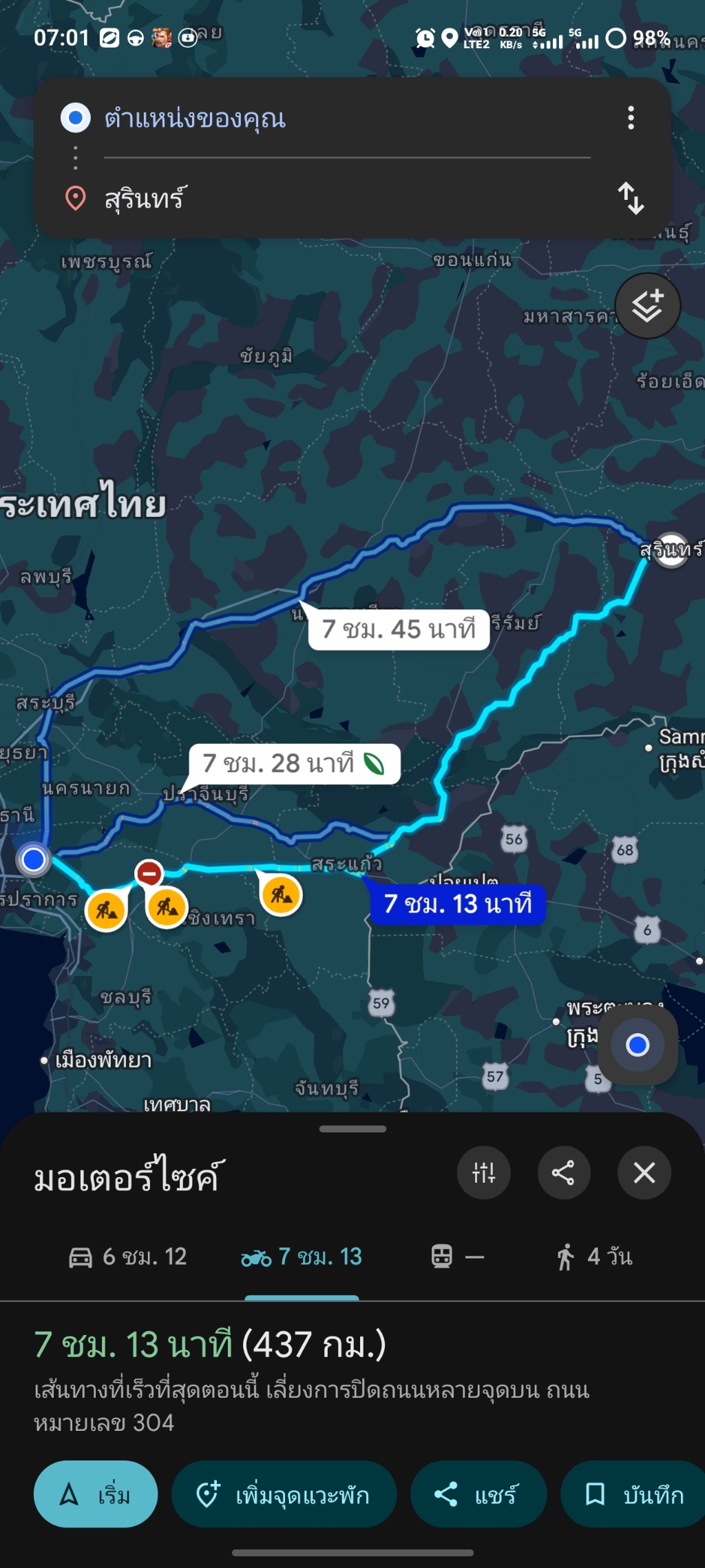 การเดินทางจากรุงเทพ-สุรินทร์ ด้วยมอไซค์