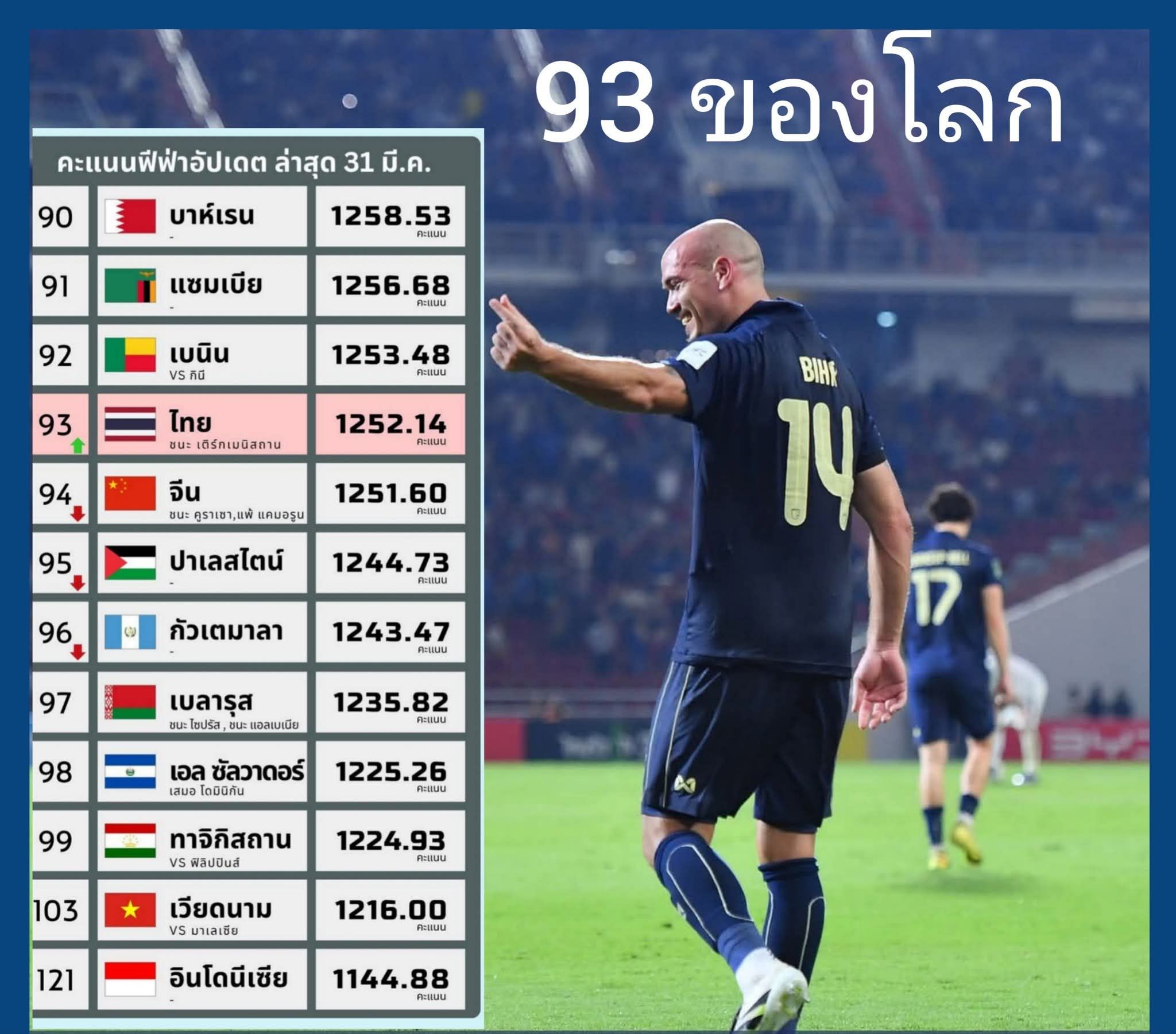 ทะยาน อันดับ 93 ของโลก ช้างศึก แซง พญามังกร เป็นที่เรียบร้อย
