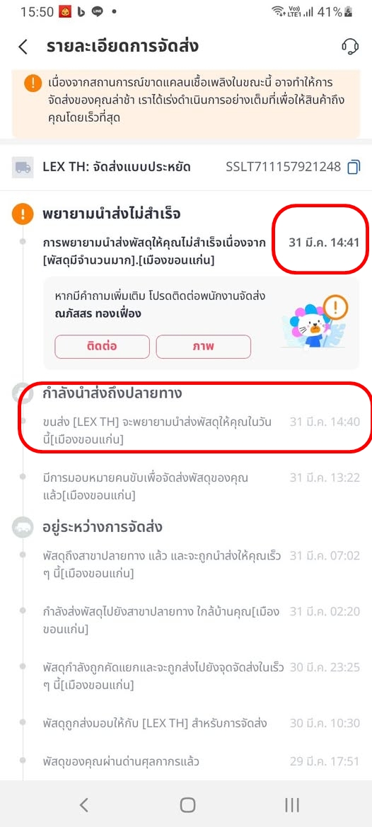 ขนส่ง [LEX TH] จะพยายามนำส่งพัสดุให้คุณในวันนี้ [เมืองขอนแก่น]