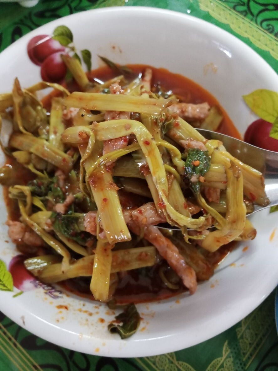 ส่วนผัดผักบุ้งแบบไม่เผ็ด ของคุณภรรยาฮะ