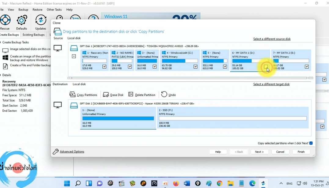 ไม่ค่อยเข้าใจการทำงานของ Macrium Reflect ในแถวที่สองเลือกอย่างไร