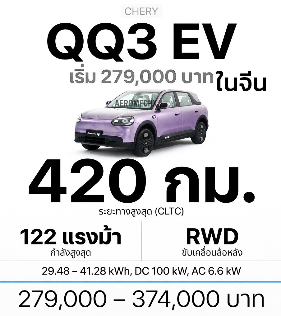 Chery QQ3 EV เปิดราคาในจีนเริ่ม 2 แสนปลาย วิ่ง 420 กม. ถ้าเข้าไทยราคานี้มีสะเทือน? 🚗⚡